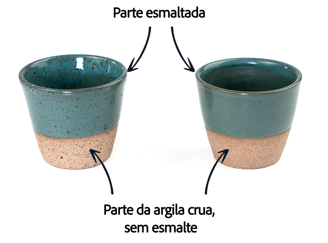 Cada peça pode ter apenas um esmalte, além da cor da parte crua, que será a cor/textura da argila escolhida.