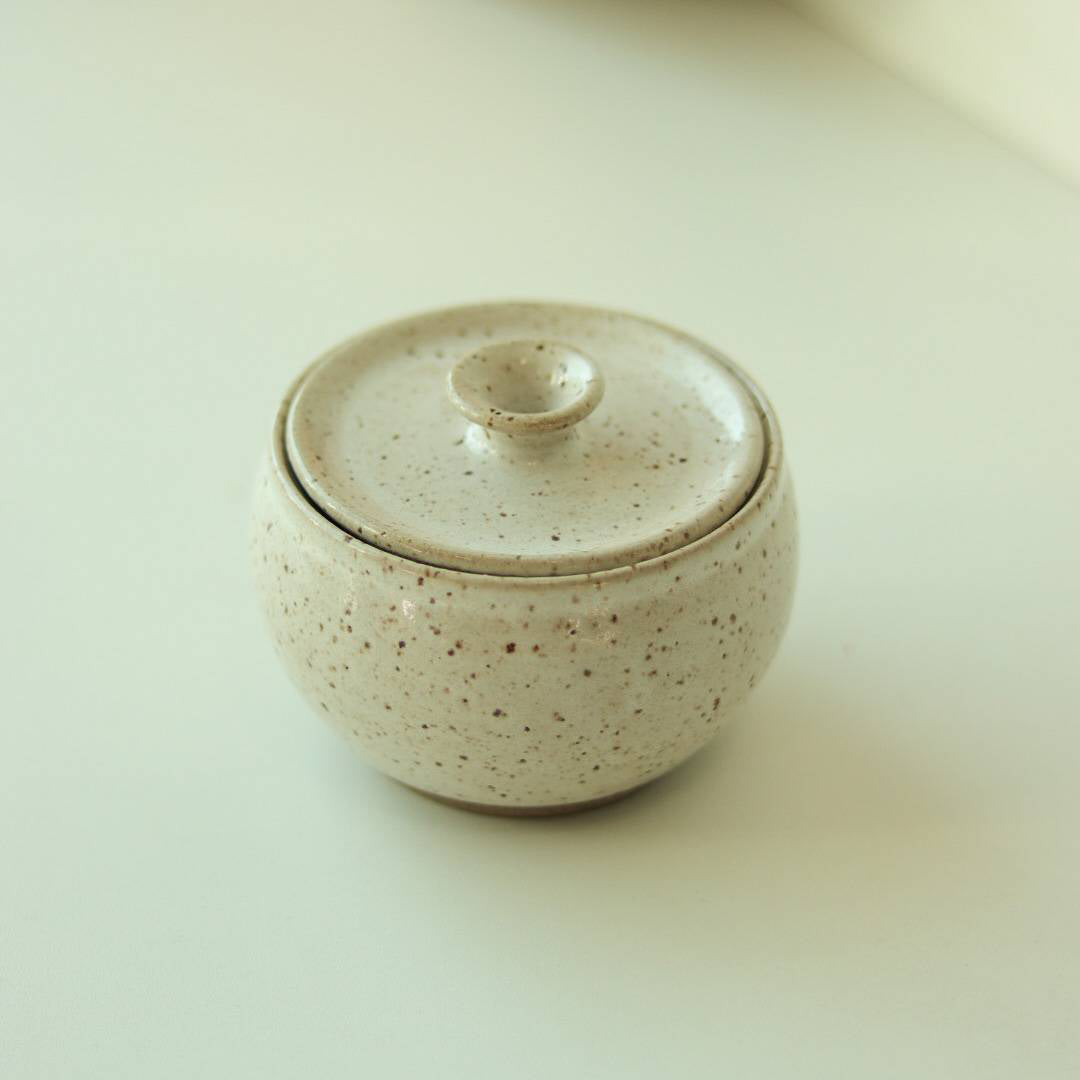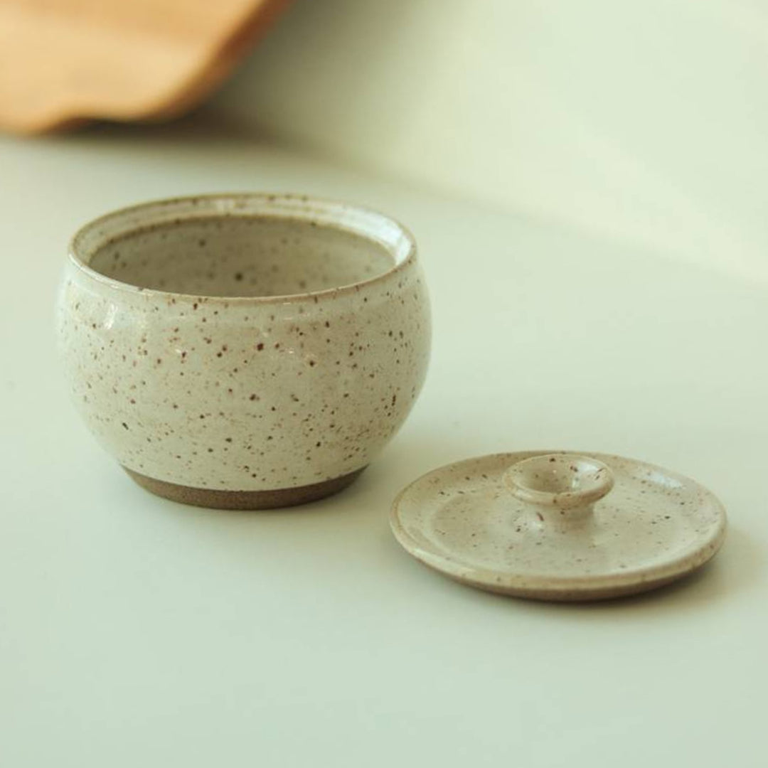 O açucareiro abaloado com tampa em cerâmica artesanal é a escolha perfeita para quem busca funcionalidade com um toque de charme e originalidade. Feito à mão com argilas naturais e esmaltes autorais, cada peça carrega a beleza das imperfeições únicas do processo artesanal.
