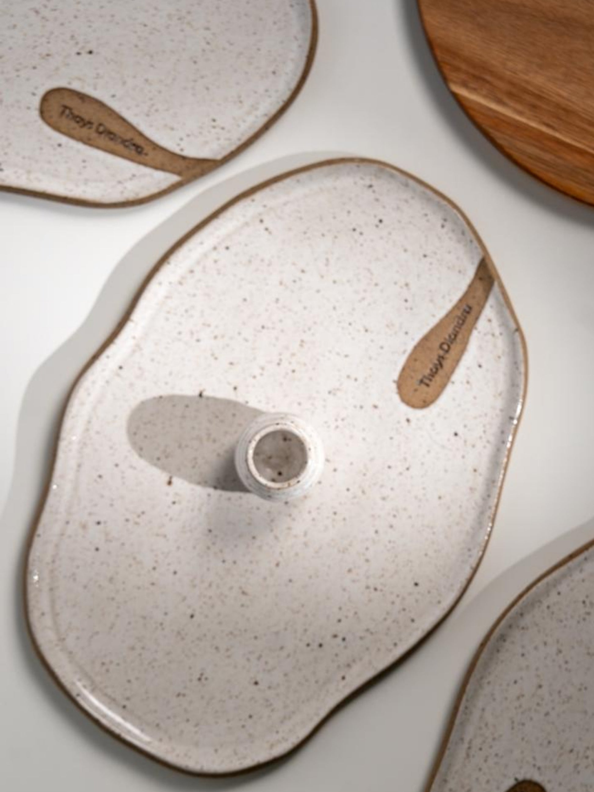 DescriçãoA bandeja retangular orgânica em cerâmica artesanal personalizada é uma peça que foge do convencional e valoriza as formas fluídas e naturais do feito à mão. Com contornos assimétricos e acabamento autoral, essa bandeja une funcionalidade, originalidade e estética sensível. Feita manualmente com argilas de alta qualidade, sua forma retangular com bordas orgânicas permite usos diversos: servir petiscos, apoiar objetos decorativos ou compor uma mesa posta com personalidade. Cada peça é única, com variações naturais de cor, textura e forma. Disponível em diversas cores e massas cerâmicas, a bandeja é ideal para quem busca peças autorais com alma artesanal e expressão artística. Feito a mão: A matéria-prima ganha forma e identidade através do toque das mãos. Pequenas variações de tamanho, textura e tonalidade fazem parte dessa jornada, tornando cada criação exclusiva. A argila responde ao fogo de maneira singular, criando nuances e efeitos impossíveis de replicar em série.
