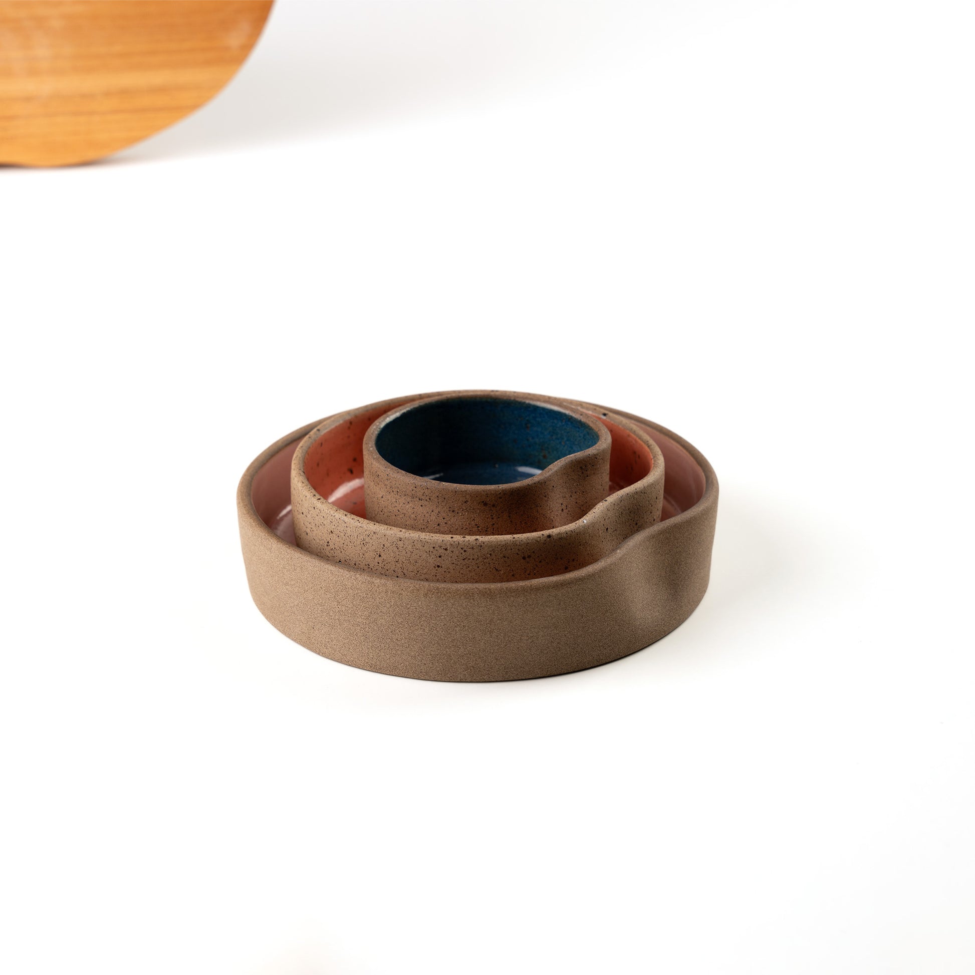 Feito a mão: A matéria-prima ganha forma e identidade através do toque das mãos. Pequenas variações de tamanho, textura e tonalidade fazem parte dessa jornada, tornando cada criação exclusiva. A argila responde ao fogo de maneira singular, criando nuances e efeitos impossíveis de replicar em série.