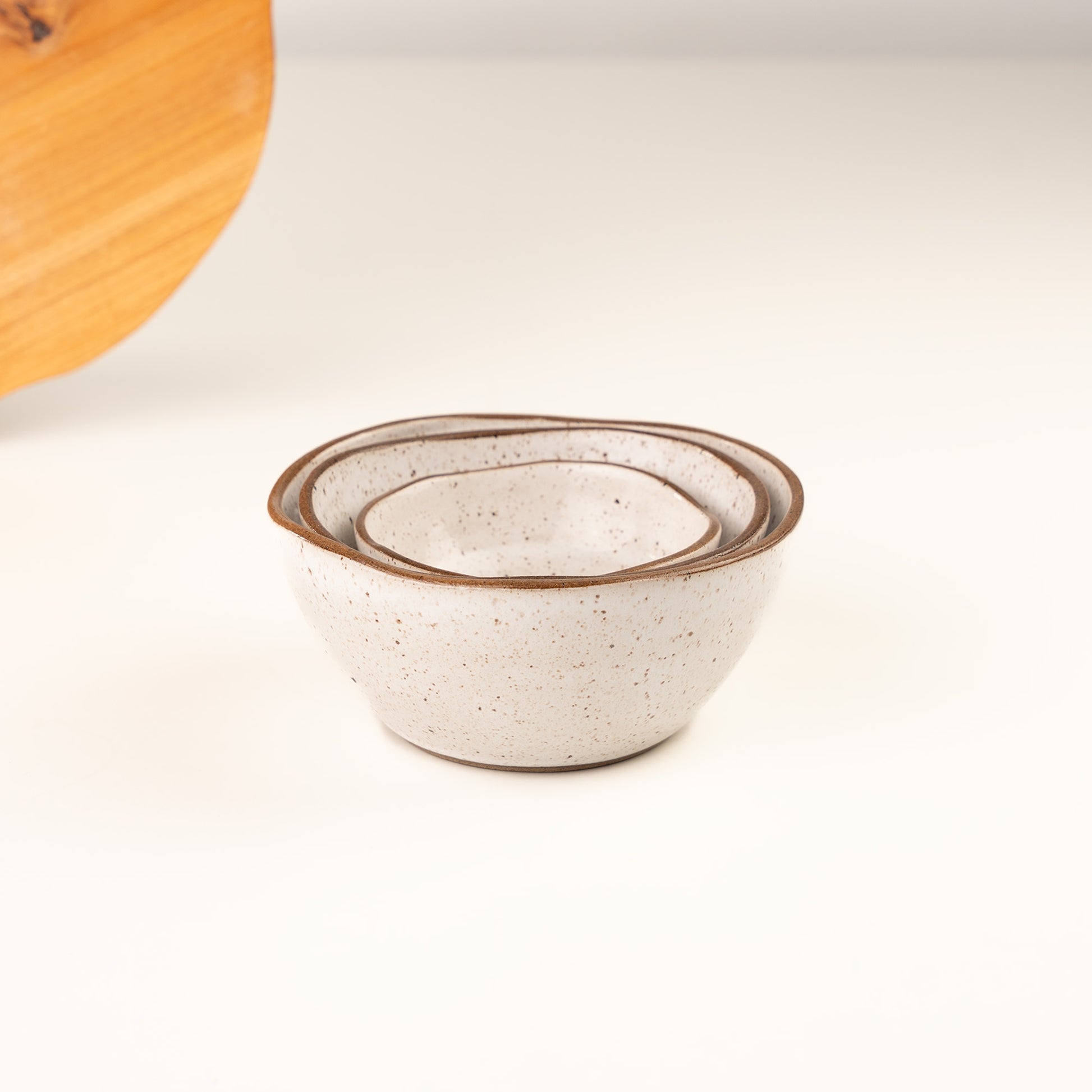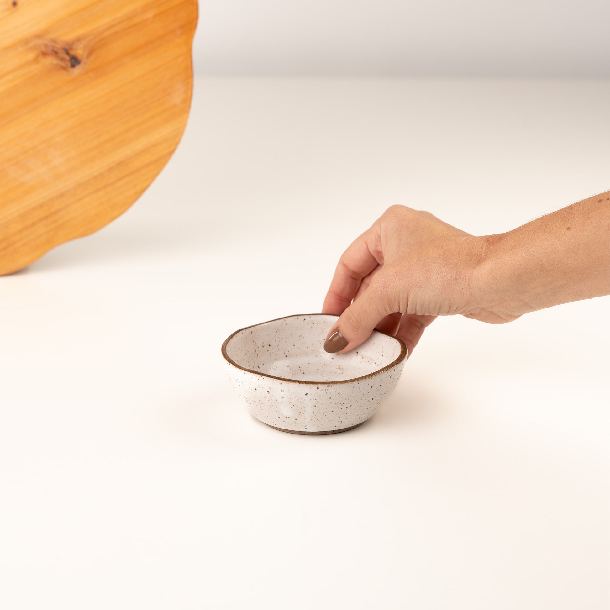 O Bowl Encontro redondo orgânico é uma peça de cerâmica artesanal que valoriza o gesto espontâneo e o contorno imperfeito. Seu formato redondo com leve irregularidade orgânica reforça a identidade da linha Encontro, onde cada peça carrega a naturalidade do feito à mão.