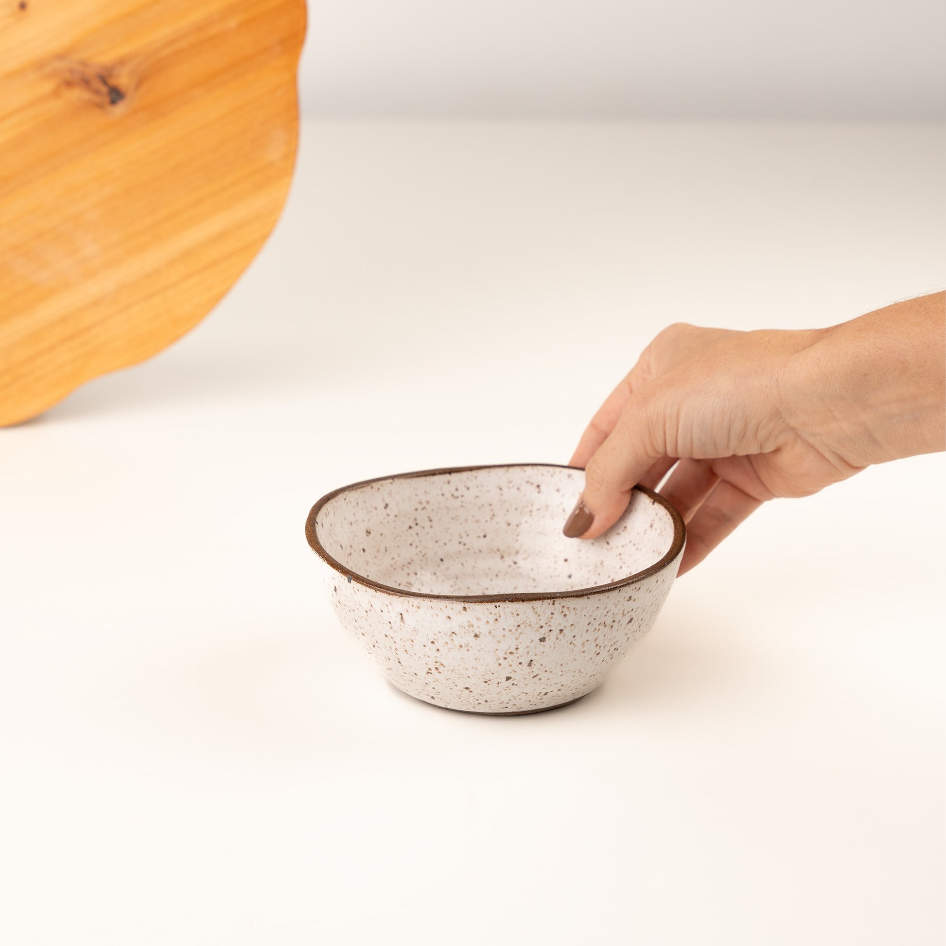 DescriçãoO Bowl Encontro redondo orgânico é uma peça de cerâmica artesanal que valoriza o gesto espontâneo e o contorno imperfeito. Seu formato redondo com leve irregularidade orgânica reforça a identidade da linha Encontro, onde cada peça carrega a naturalidade do feito à mão. Modelado manualmente com argilas variadas e queimado em alta temperatura, esse bowl possui um design fluido, que se adapta bem tanto ao uso diário quanto à composição de mesas mais afetivas. Ideal para servir porções individuais, sopas, frutas ou sobremesas, ele se destaca pela forma suave e acabamento único. As variações de cor, textura e massa cerâmica fazem com que cada peça seja exclusiva, com presença marcante, mesmo na simplicidade. Feito a mão: A matéria-prima ganha forma e identidade através do toque das mãos. Pequenas variações de tamanho, textura e tonalidade fazem parte dessa jornada, tornando cada criação exclusiva. A argila responde ao fogo de maneira singular, criando nuances e efeitos impossíveis de replicar em série.