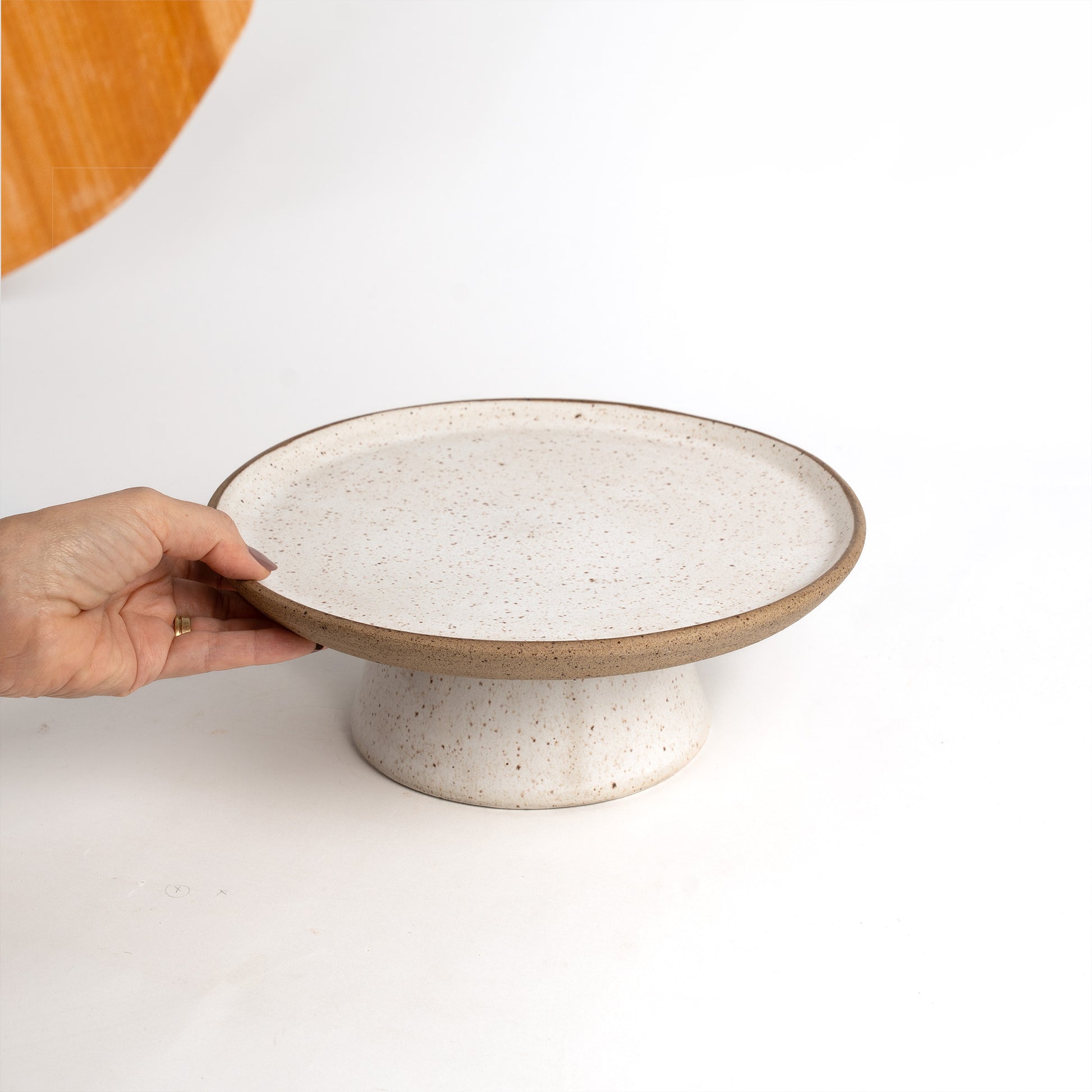 A Bowl-leira AMME é uma peça de cerâmica artesanal que mistura as funções de bowl e boleira com elegância e leveza. Seu formato amplo e borda suave acomoda bem bolos pequenos, frutas ou pães, oferecendo versatilidade na hora de servir com estilo.