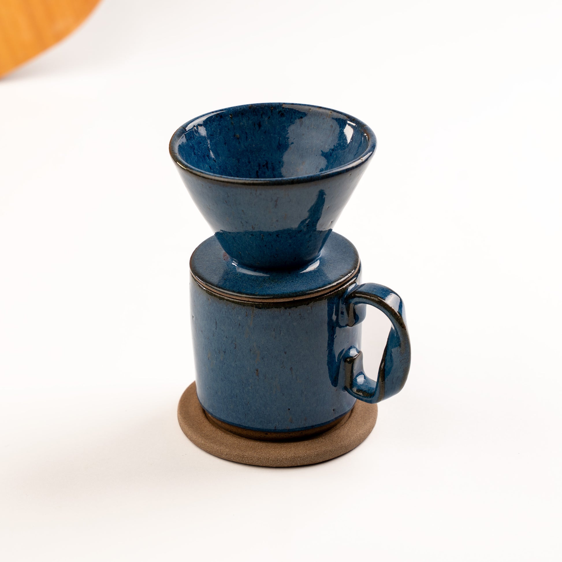 Caneca Alça Torcida com porta filtro e base em cerâmica artesanal feita à mão, ideal para quem aprecia o preparo de café coado com beleza, funcionalidade e estilo único. A caneca traz uma alça com torção expressiva e confortável, o porta filtro permite coar diretamente sobre ela e a base completa o conjunto com estabilidade e composição visual.