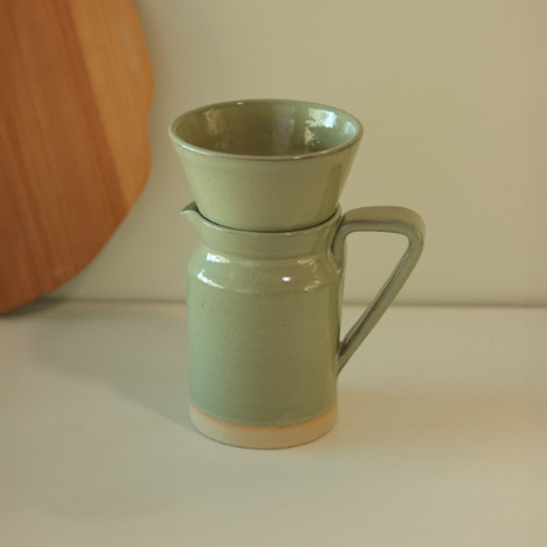 Conjunto Nosso Café com jarra e porta filtro em cerâmica artesanal, feito à mão para valorizar o preparo de café de forma manual, afetiva e cheia de estilo. O design simples e funcional das peças oferece praticidade, enquanto a estética artesanal transforma o momento do café em um ritual especial.