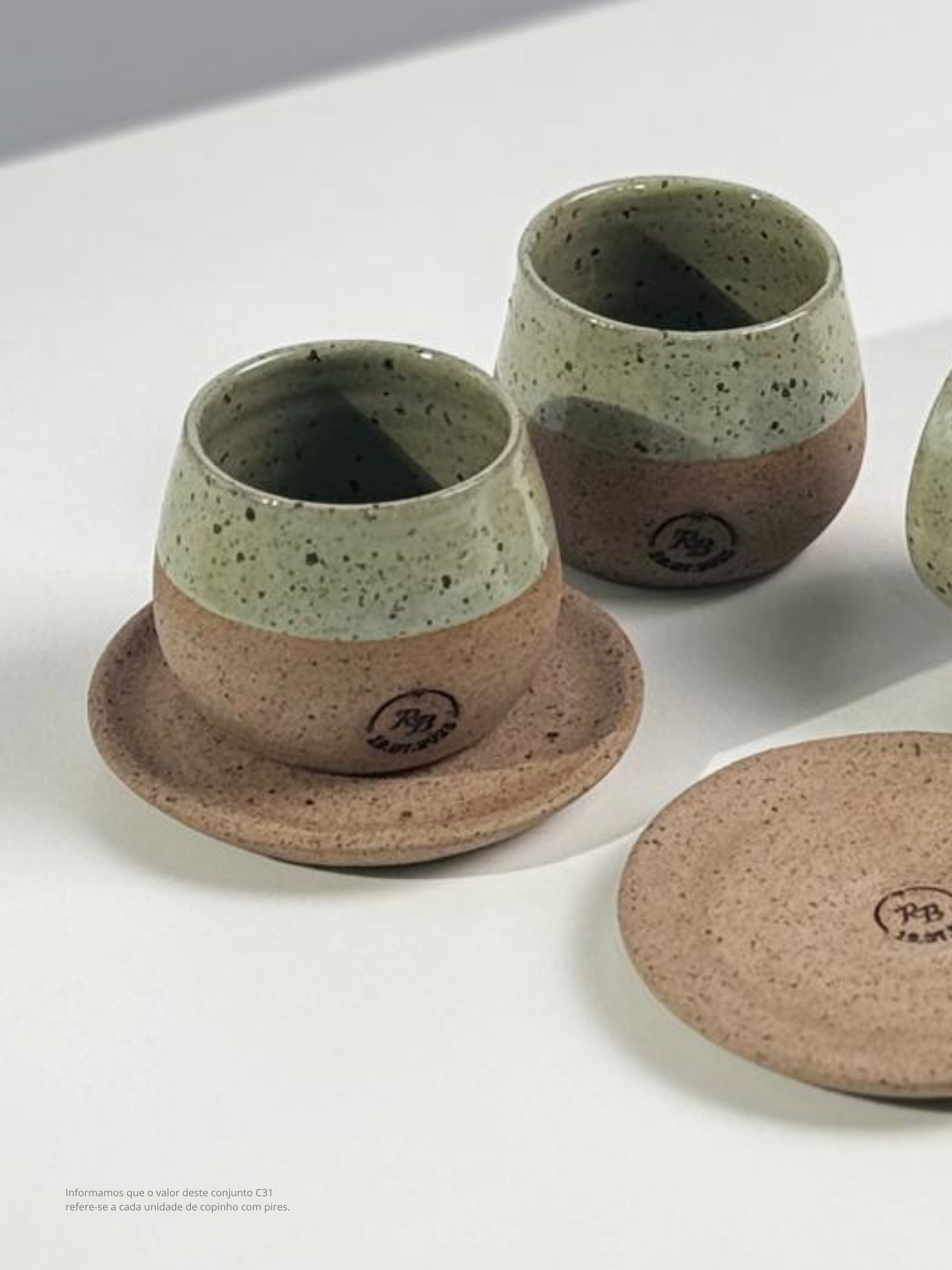 DescriçãoCopinho Cumbuca com pires em cerâmica artesanal personalizada, feito à mão com formas suaves e presença delicada. O copinho de boca levemente aberta remete ao formato de uma pequena cumbuca, proporcionando conforto no uso e versatilidade para servir cafés, chás ou degustações. O pires completa o conjunto com equilíbrio e praticidade para o dia a dia ou ocasiões especiais. Disponível em diferentes cores e massas cerâmicas, pode ser personalizado com nomes, palavras ou símbolos — ideal para presentes afetivos e composições autorais à mesa posta. Feito a mão: A matéria-prima ganha forma e identidade através do toque das mãos. Pequenas variações de tamanho, textura e tonalidade fazem parte dessa jornada, tornando cada criação exclusiva. A argila responde ao fogo de maneira singular, criando nuances e efeitos impossíveis de replicar em série.