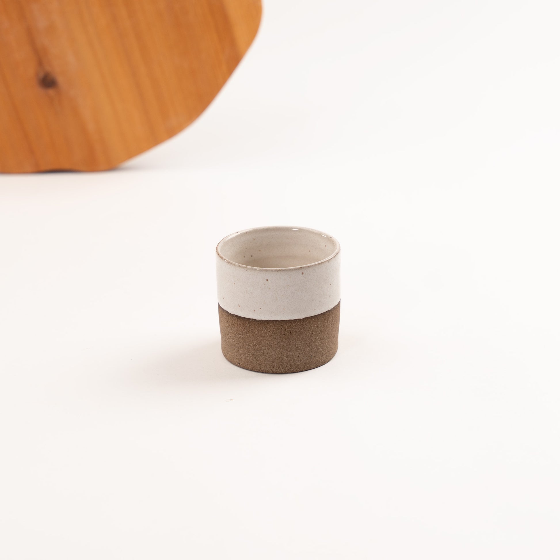 Copinho Reto em cerâmica artesanal, com linhas simples e formato cilíndrico. Ideal para servir bebidas, molhos, com um visual limpo e moderno.