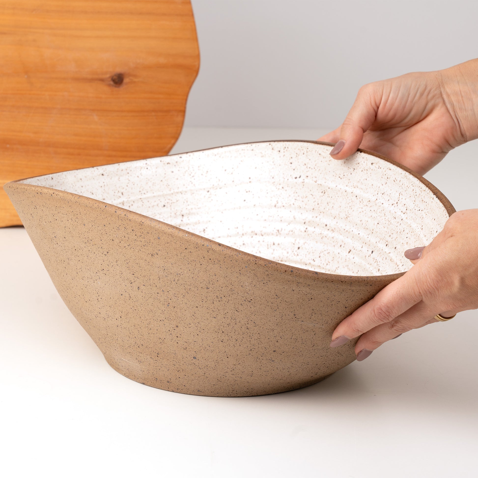 Feito a mão: A matéria-prima ganha forma e identidade através do toque das mãos. Pequenas variações de tamanho, textura e tonalidade fazem parte dessa jornada, tornando cada criação exclusiva. A argila responde ao fogo de maneira singular, criando nuances e efeitos impossíveis de replicar em série.