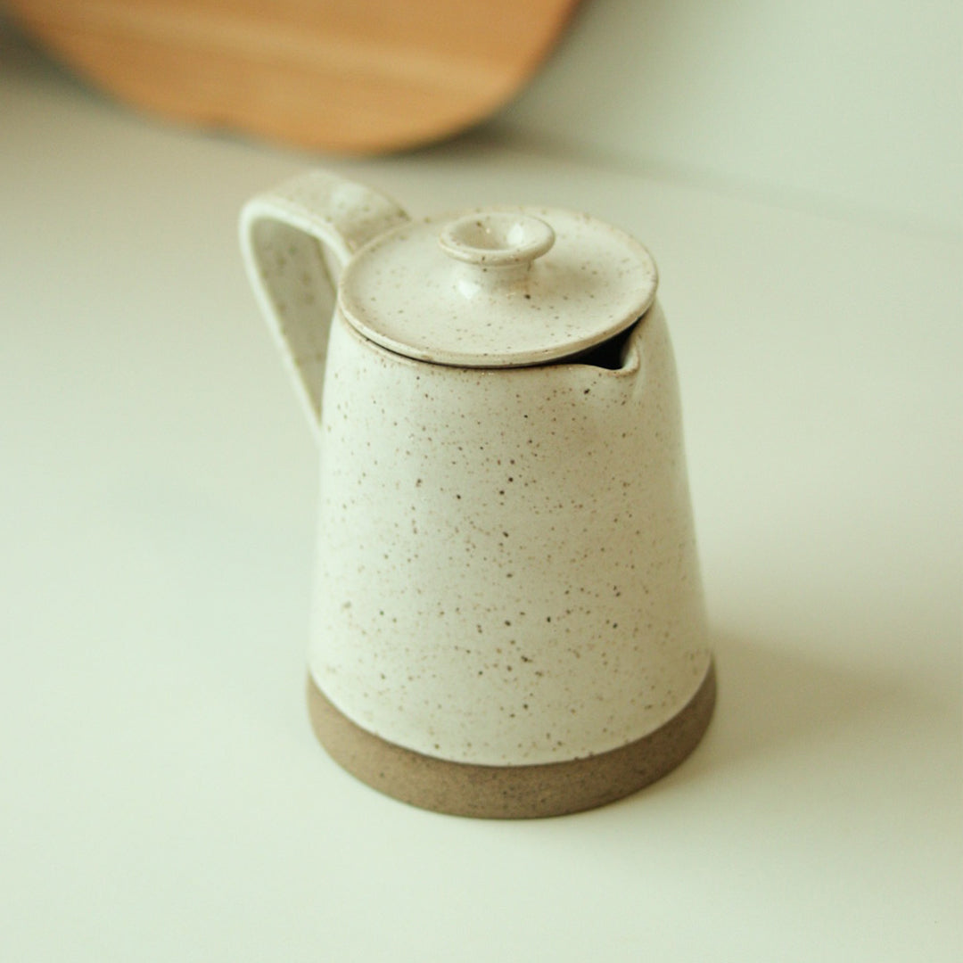 Modelada à mão com argilas naturais e queimada em alta temperatura, a jarra apresenta variações sutis de textura e tonalidade, reforçando sua origem artesanal. O bico bem definido e a alça confortável tornam o uso prático e intuitivo.