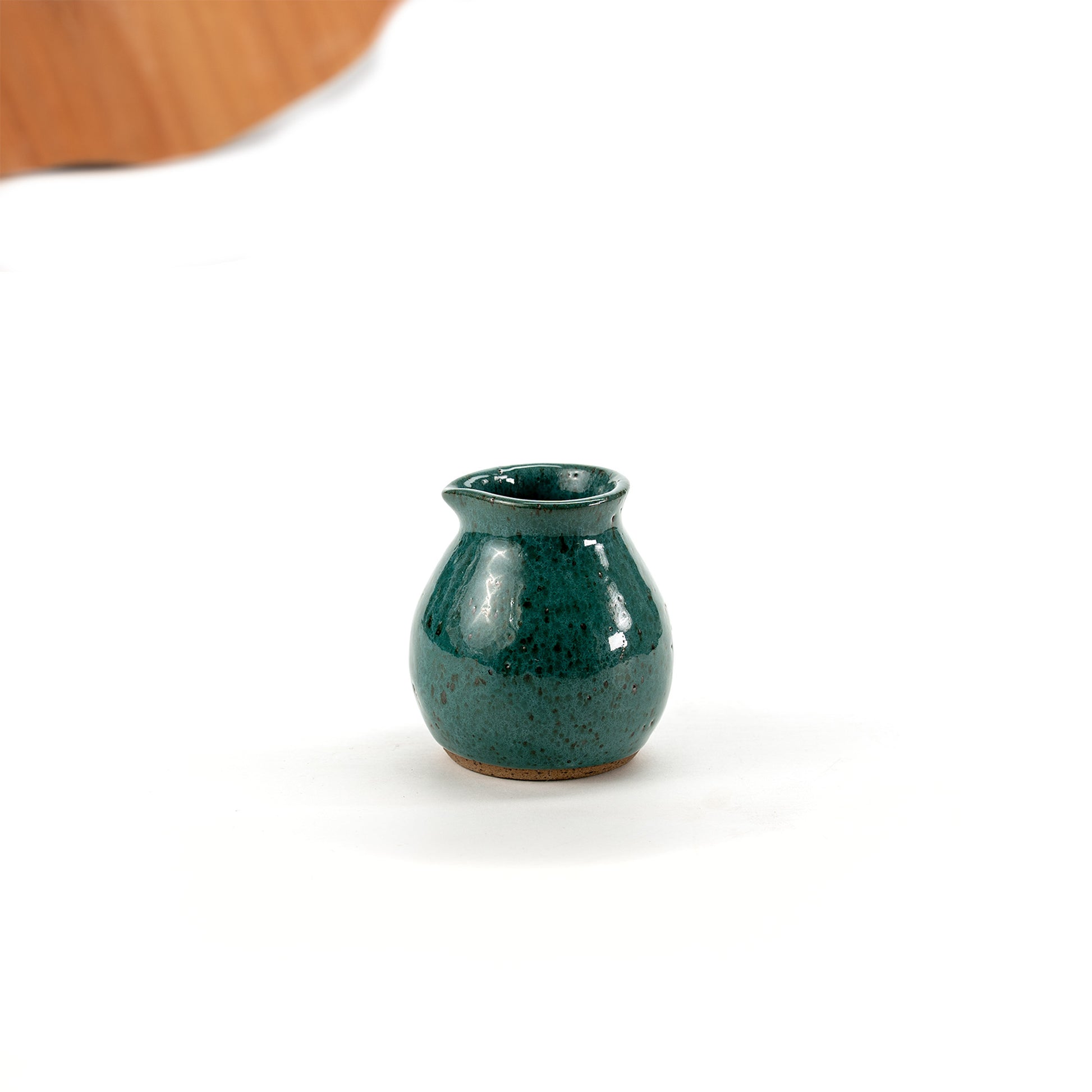 Molheira Esfera com bico em cerâmica artesanal, feita à mão com formato arredondado e bico delicado para servir com precisão. Ideal para molhos, azeites ou caldas, essa peça une praticidade e beleza com o charme do feito à mão.