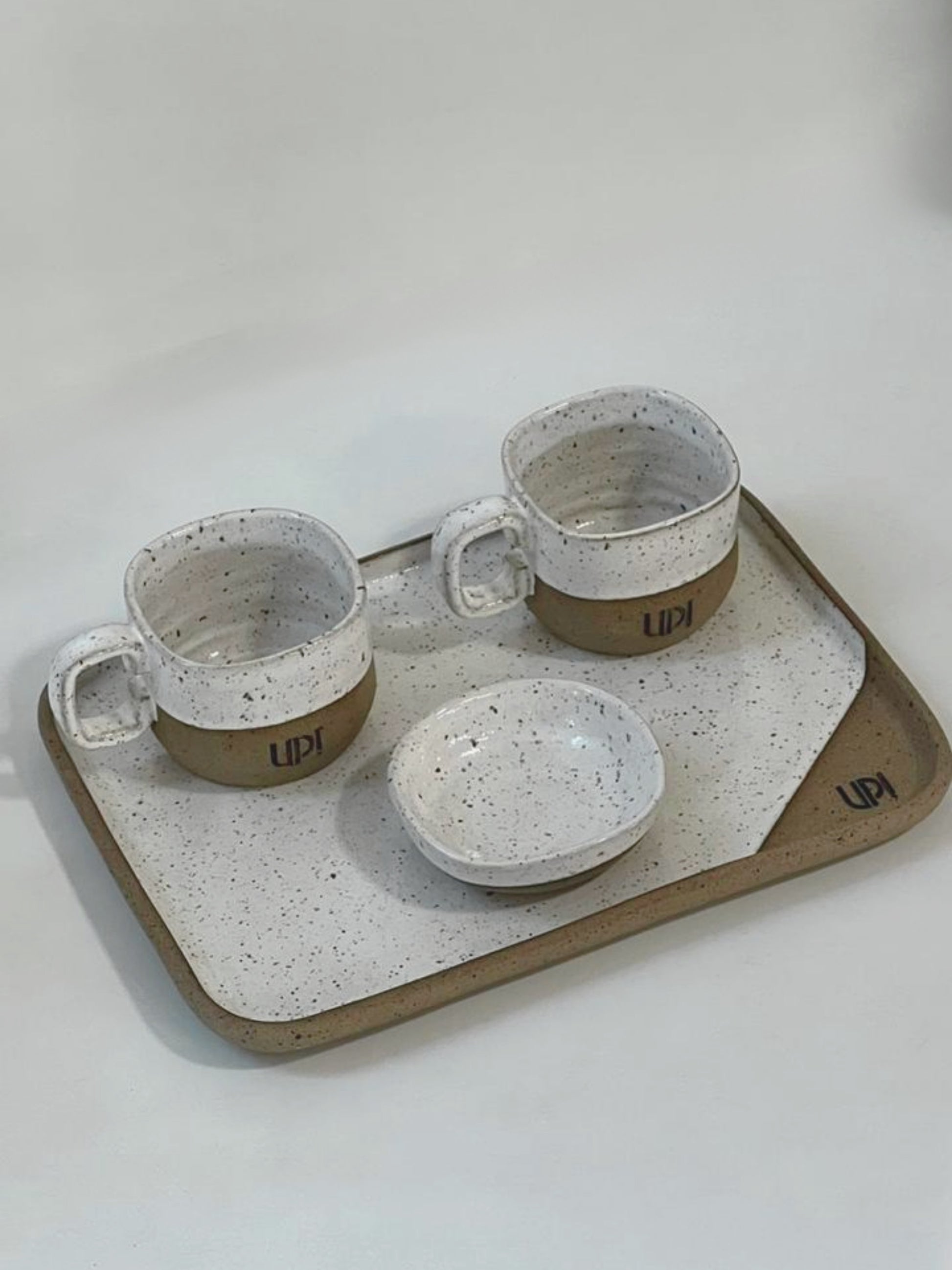 DescriçãoPar de Xícaras Quadradas sem pires, com mini bowl e bandeja retangular em cerâmica artesanal personalizada, feita à mão com design contemporâneo e proporções equilibradas. As xícaras com base quadrada trazem firmeza ao toque e estilo único, enquanto a bandeja retangular acomoda o conjunto com elegância. O mini bowl adiciona funcionalidade e delicadeza, podendo servir molhos, doces ou pequenos acompanhamentos. Disponível em diversas cores e massas cerâmicas, essa composição autoral é ideal para presentear com afeto ou transformar o café em um ritual cheio de personalidade. Feito a mão: A matéria-prima ganha forma e identidade através do toque das mãos. Pequenas variações de tamanho, textura e tonalidade fazem parte dessa jornada, tornando cada criação exclusiva. A argila responde ao fogo de maneira singular, criando nuances e efeitos impossíveis de replicar em série.