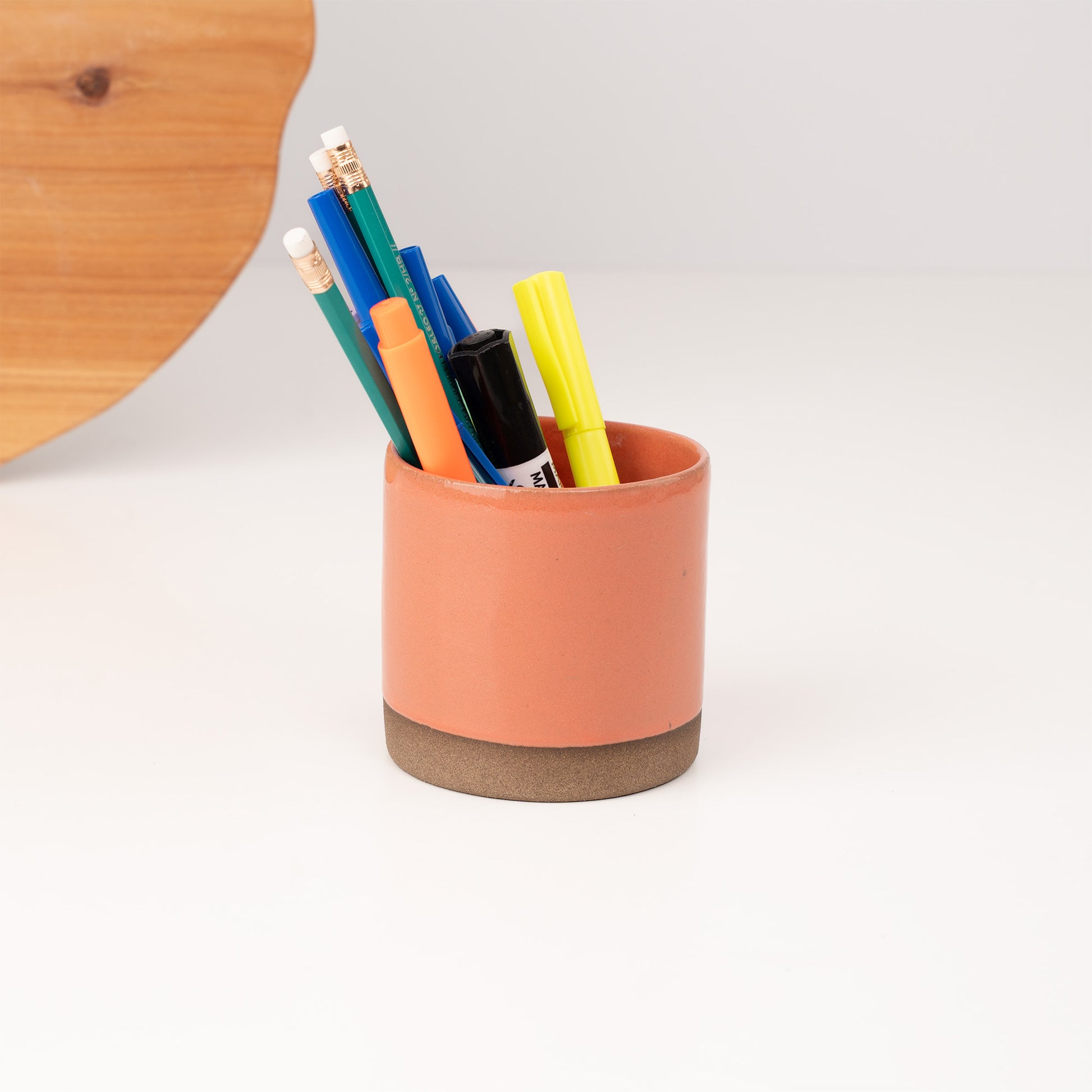DescriçãoPorta canetas reto em cerâmica artesanal, com design simples e funcional. Ideal para organizar lápis, canetas, pincéis ou outros pequenos objetos, é uma peça versátil para o escritório, ateliê ou home office. Feito à mão com argilas selecionadas, está disponível em diferentes cores e acabamentos, combinando praticidade e beleza em um só item. Seu formato reto valoriza a limpeza das formas e destaca a estética do feito à mão com elegância sutil. Feito a mão: A matéria-prima ganha forma e identidade através do toque das mãos. Pequenas variações de tamanho, textura e tonalidade fazem parte dessa jornada, tornando cada criação exclusiva. A argila responde ao fogo de maneira singular, criando nuances e efeitos impossíveis de replicar em série.