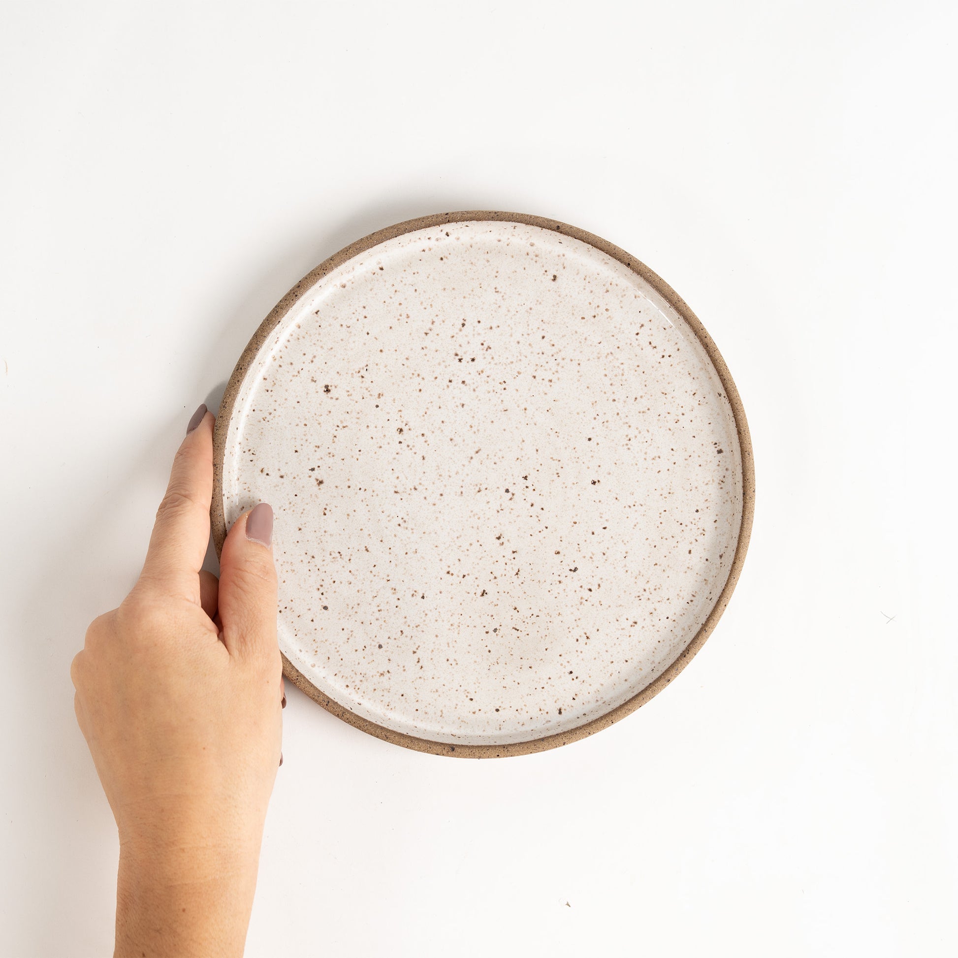 Prato Borda Reta Sobremesa em cerâmica artesanal, feito à mão com formato delicado e acabamento que valoriza o toque humano. Ideal para servir doces, frutas ou pequenas porções, traz leveza e harmonia para a mesa posta, com a identidade da linha Borda Reta.