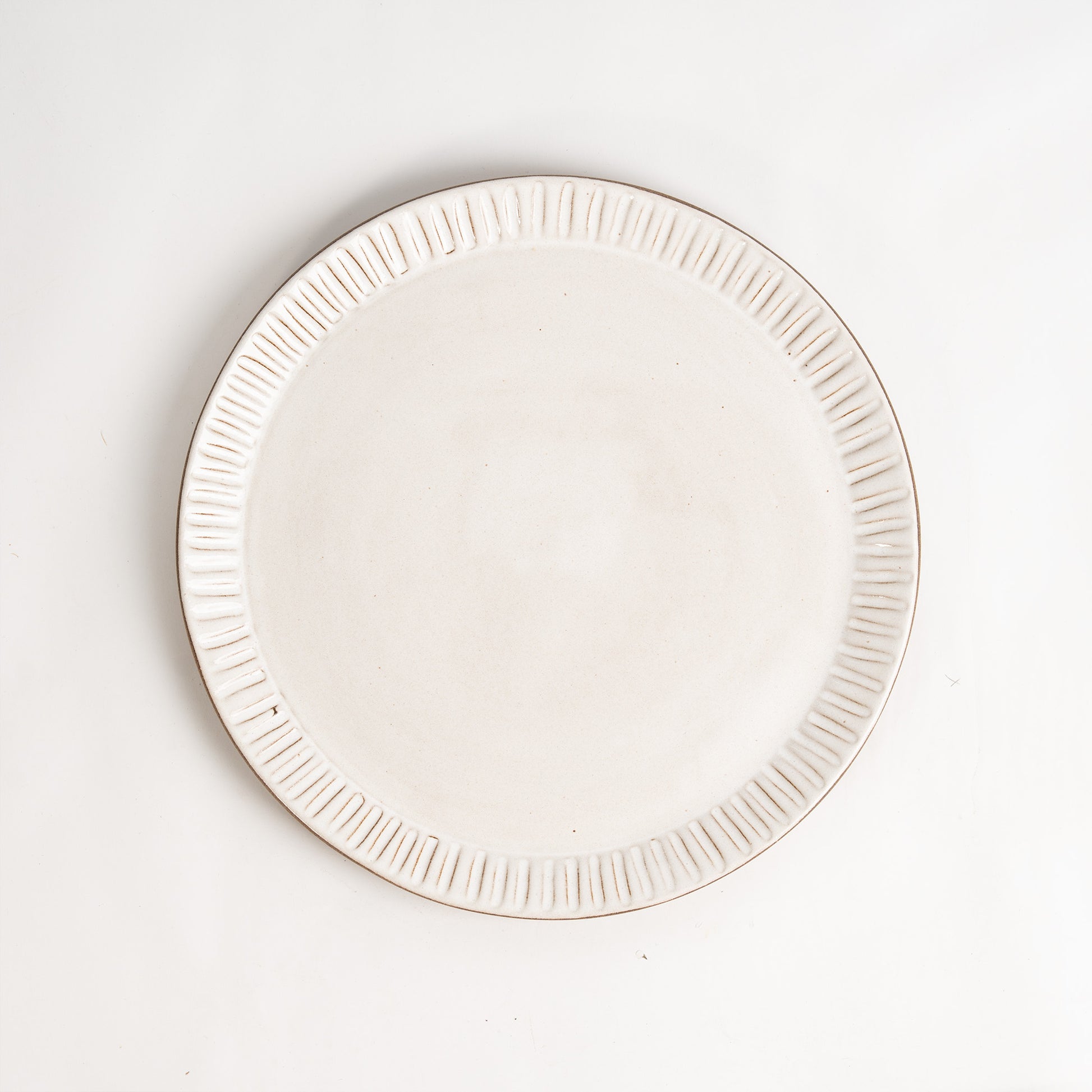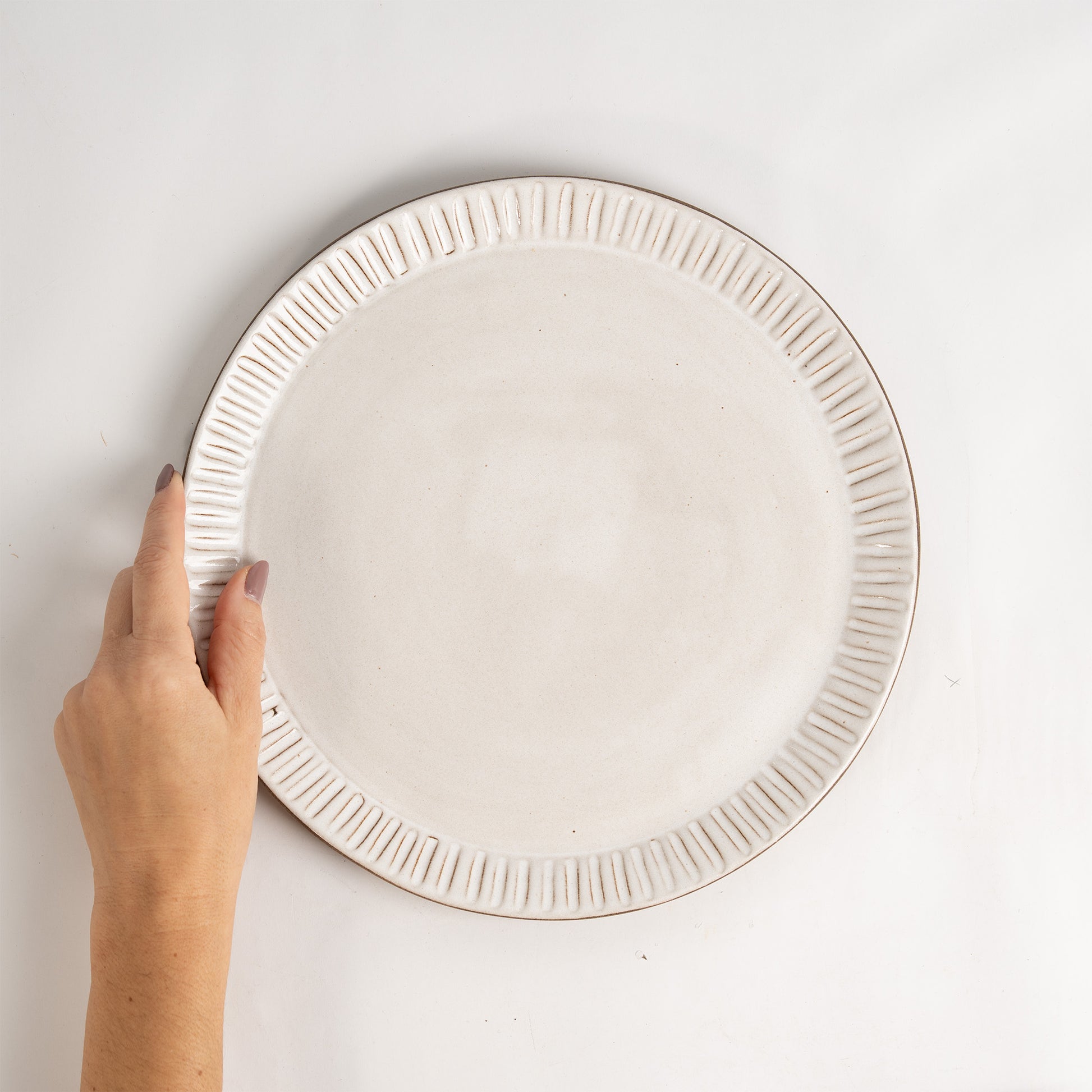 Prato Carving Refeição em cerâmica artesanal, feito à mão com entalhes delicados esculpidos diretamente na superfície da peça. O relevo sutil valoriza o trabalho manual e transforma o ato de servir em uma experiência estética. Ideal para refeições completas, traz textura, profundidade e originalidade para a mesa posta.