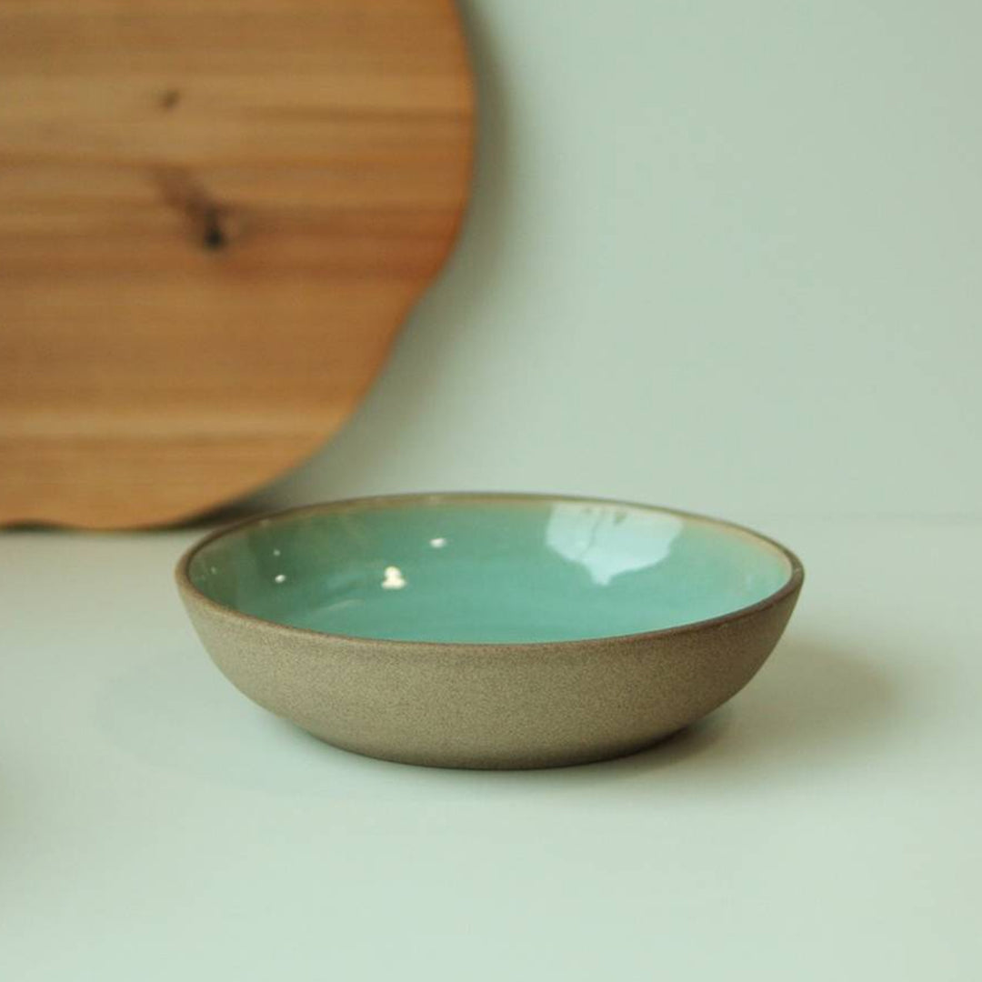 O design orgânico e o acabamento manual tornam cada peça única, com variações sutis de cor e textura que refletem o processo artesanal. A borda suave e o formato envolvente proporcionam uma experiência acolhedora à mesa, seja no uso diário ou em composições especiais.