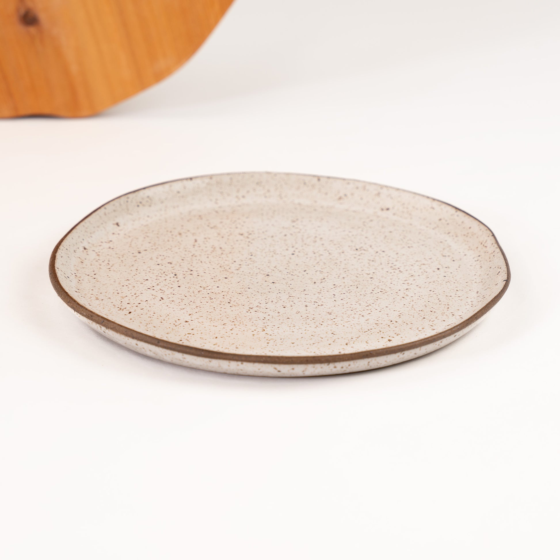 Prato Encontro Refeição Orgânico em cerâmica artesanal, feito à mão com bordas levemente irregulares que expressam o toque artesanal em cada peça. Seu formato orgânico valoriza a apresentação das refeições e traz mais presença para o dia a dia à mesa.