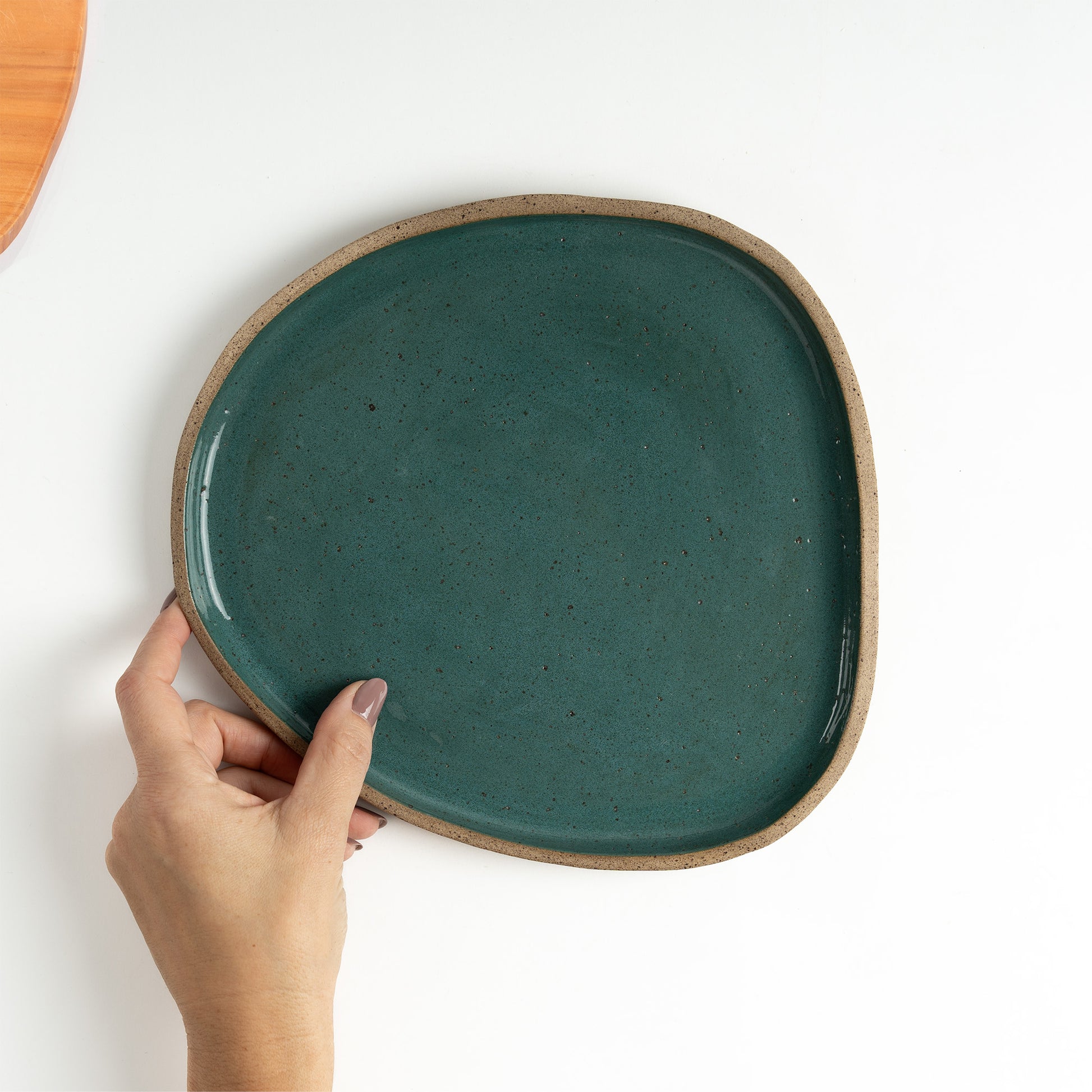 Prato triângulo orgânico em cerâmica artesanal, com formato assimétrico e bordas suaves que remetem à fluidez das formas naturais. Cada peça é moldada à mão, revelando curvas únicas que transformam a louça em elemento de expressão na mesa posta.
