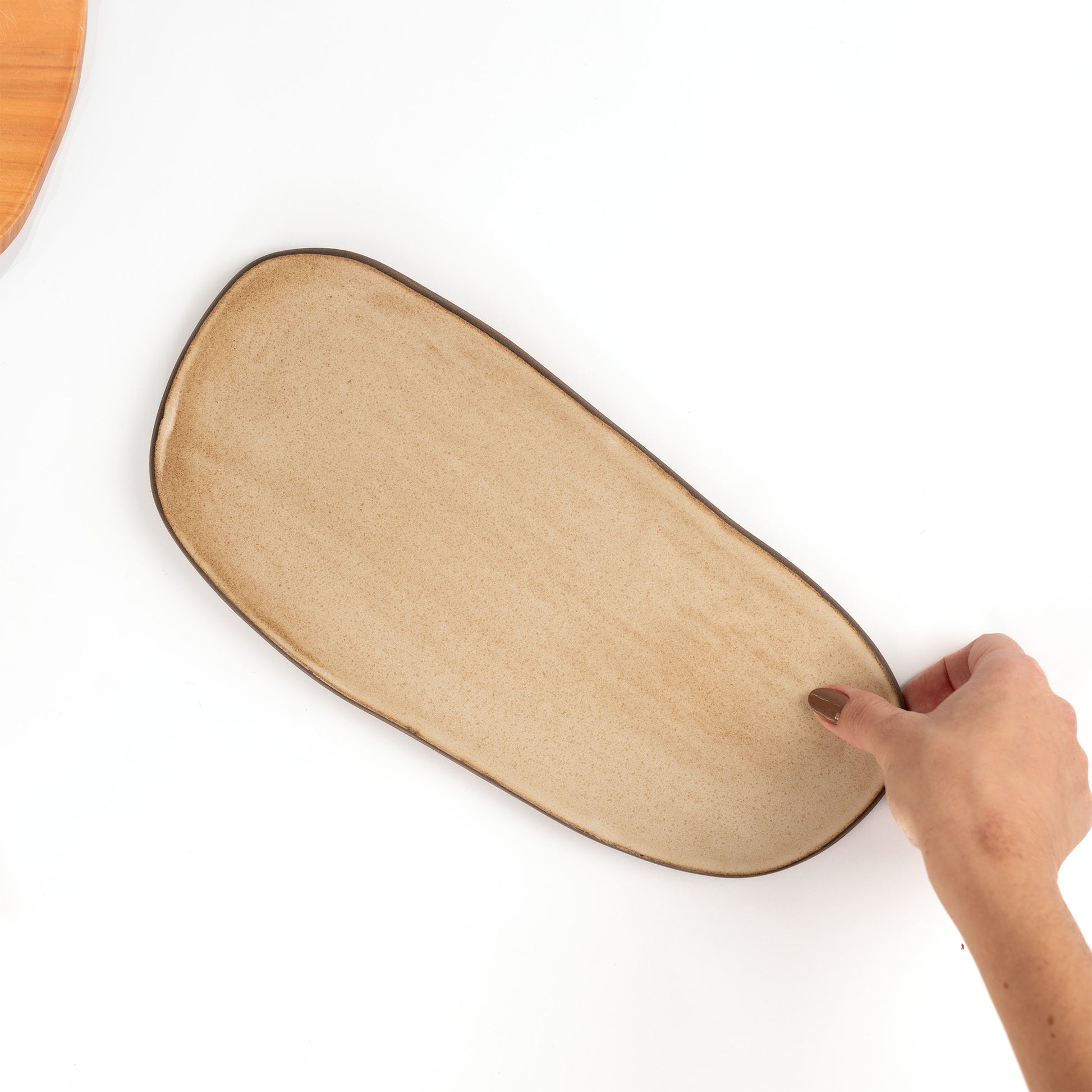 Réguas orgânicas para servir em cerâmica artesanal, feitas à mão com formato alongado e bordas irregulares que evocam o movimento natural da argila. São ideais para composições de sushi, sashimis e entradas orientais, oferecendo uma base elegante e funcional para servir com equilíbrio e presença.