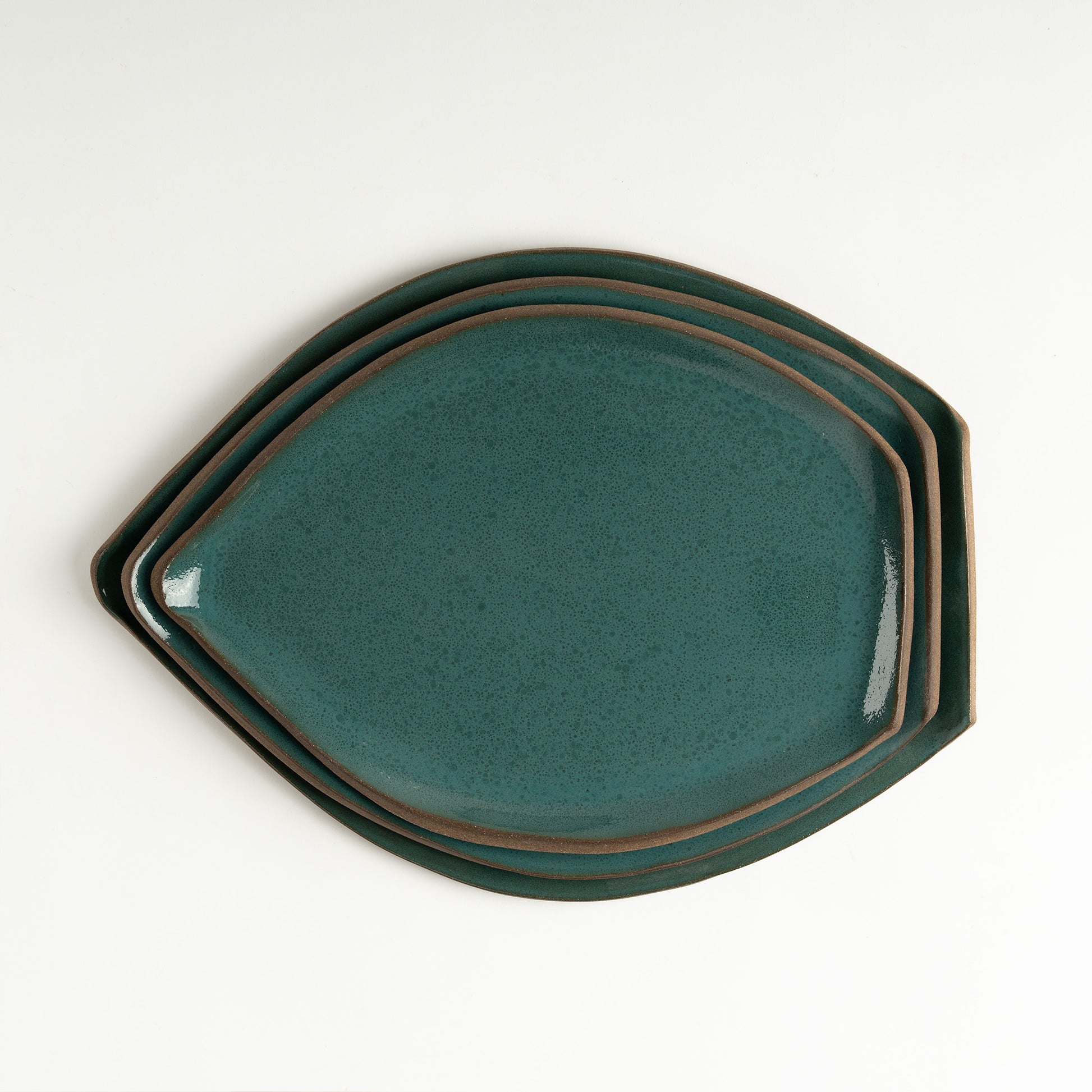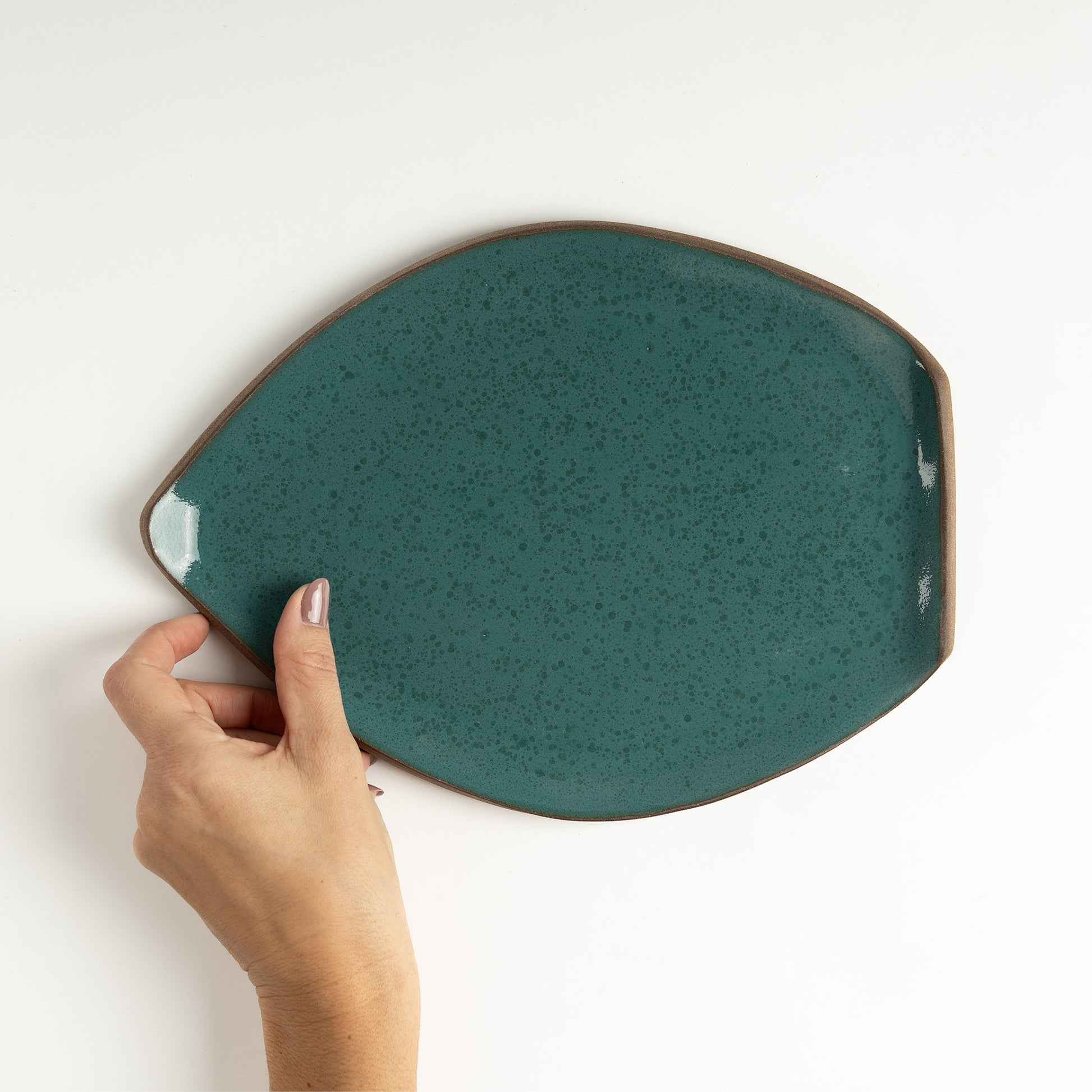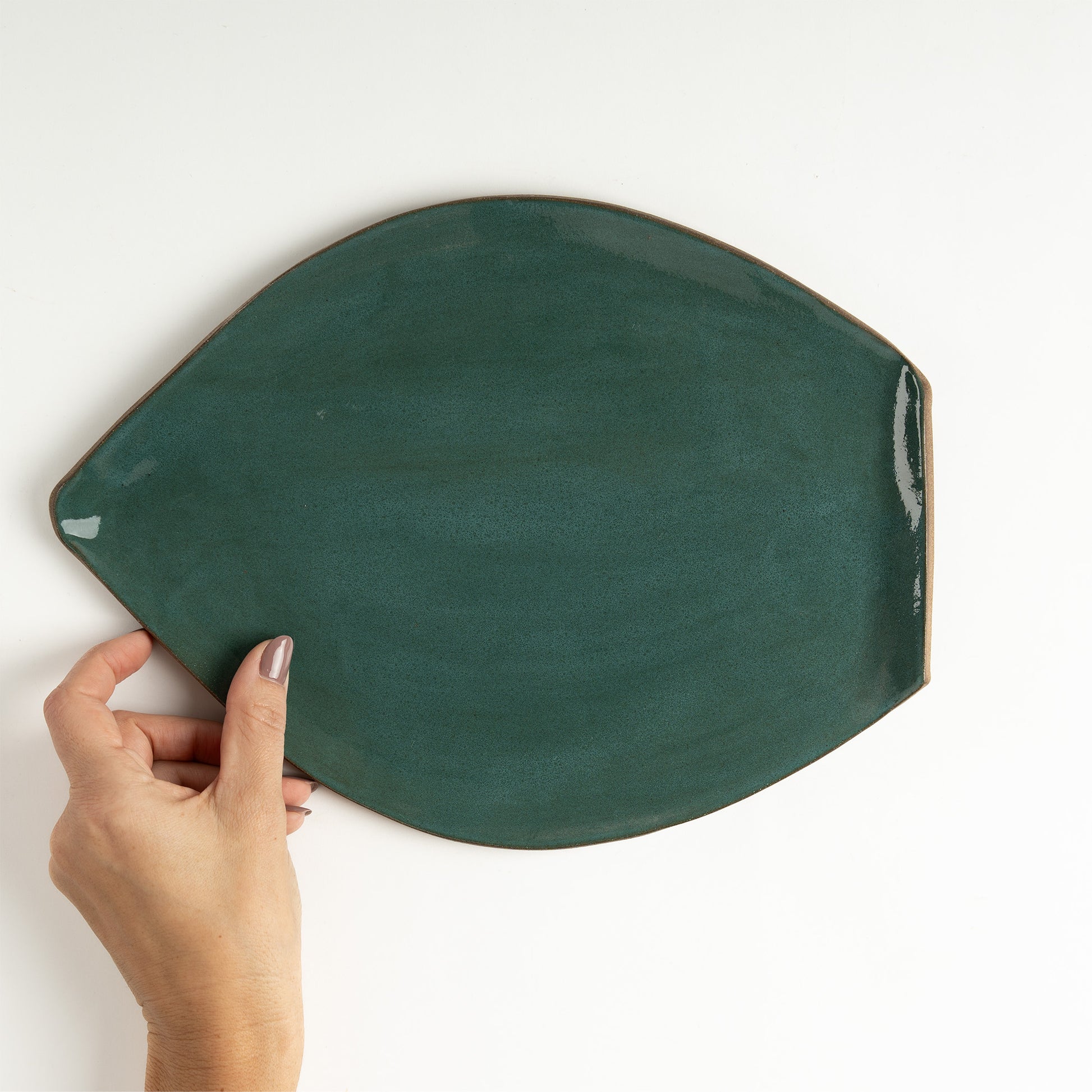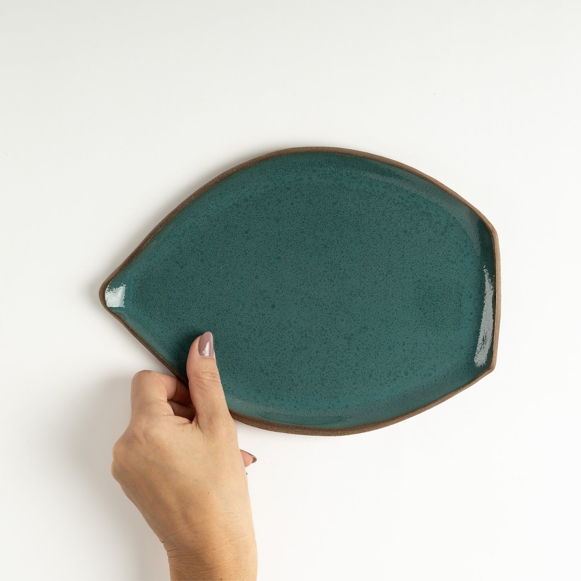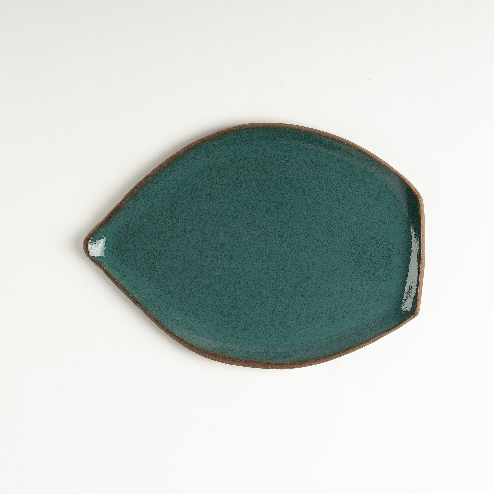 Travessa Folha em cerâmica artesanal, com formato orgânico que remete à silhueta de uma folha. Suas linhas delicadas e desenho fluido trazem leveza à mesa, combinando função com um visual marcante e natural.