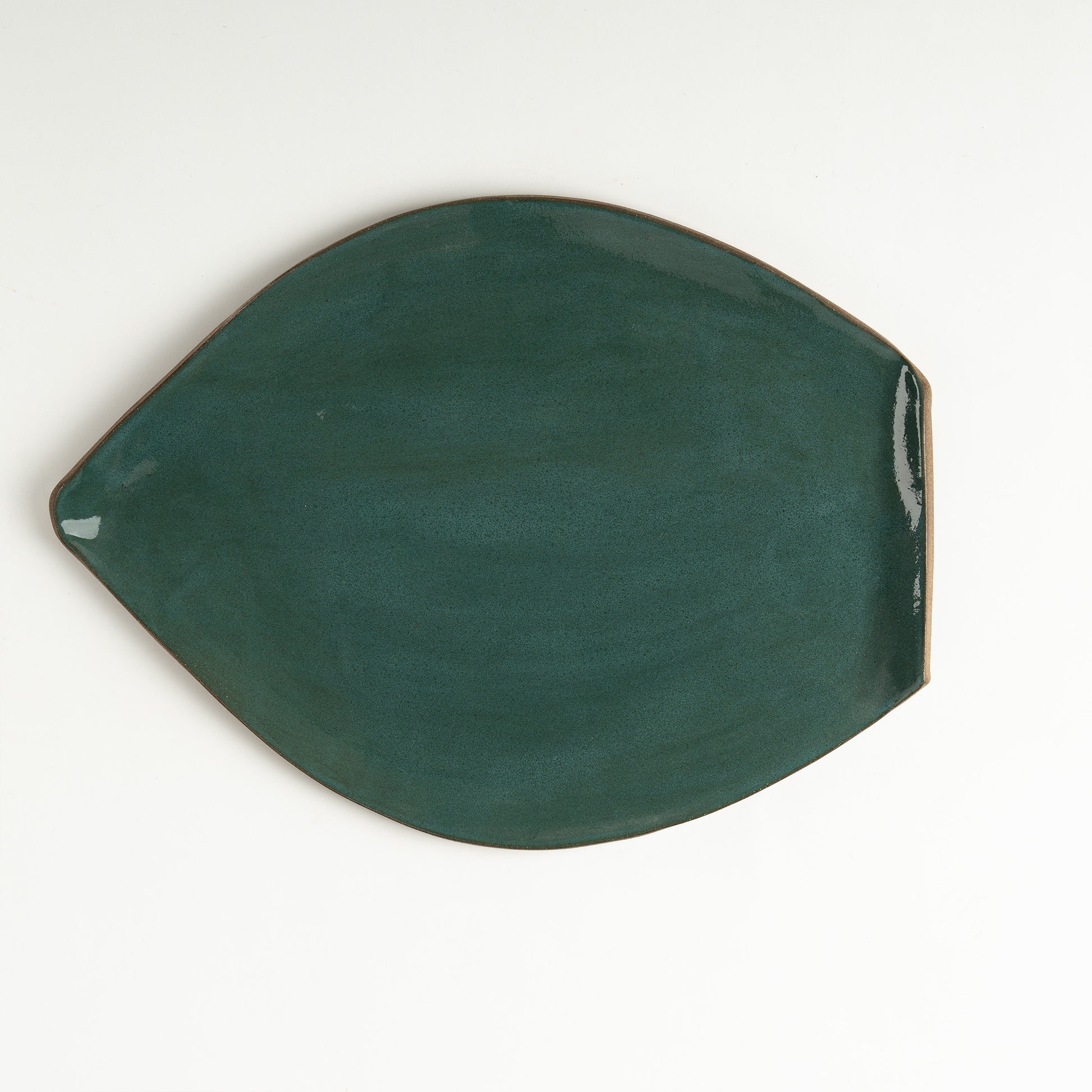 Travessa Folha em cerâmica artesanal, com formato orgânico que remete à silhueta de uma folha. Suas linhas delicadas e desenho fluido trazem leveza à mesa, combinando função com um visual marcante e natural.