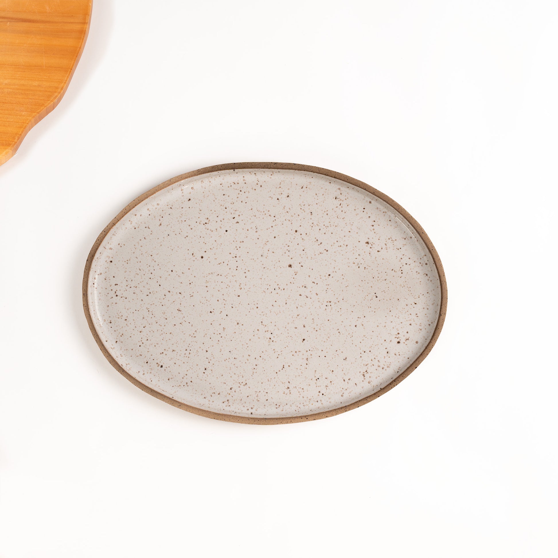 Travessa oval em cerâmica artesanal, ideal para servir pratos variados com elegância e praticidade. Seu formato alongado facilita a disposição dos alimentos, valorizando a apresentação à mesa.