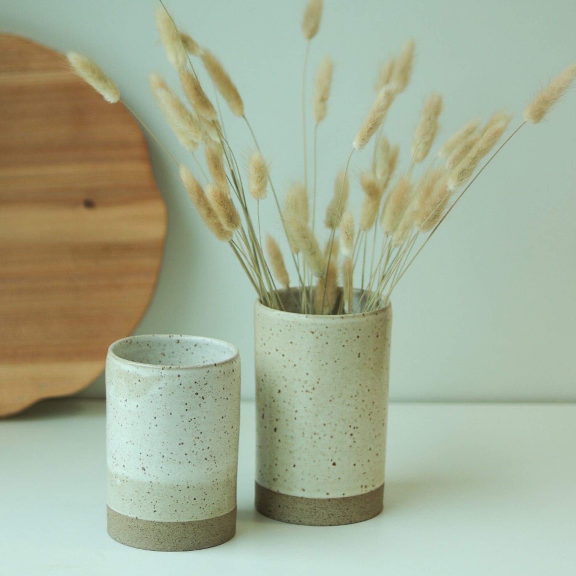 Disponível em diferentes massas e cores, o Vaso Reto é uma escolha elegante para composições simples, com identidade e expressão artesanal.