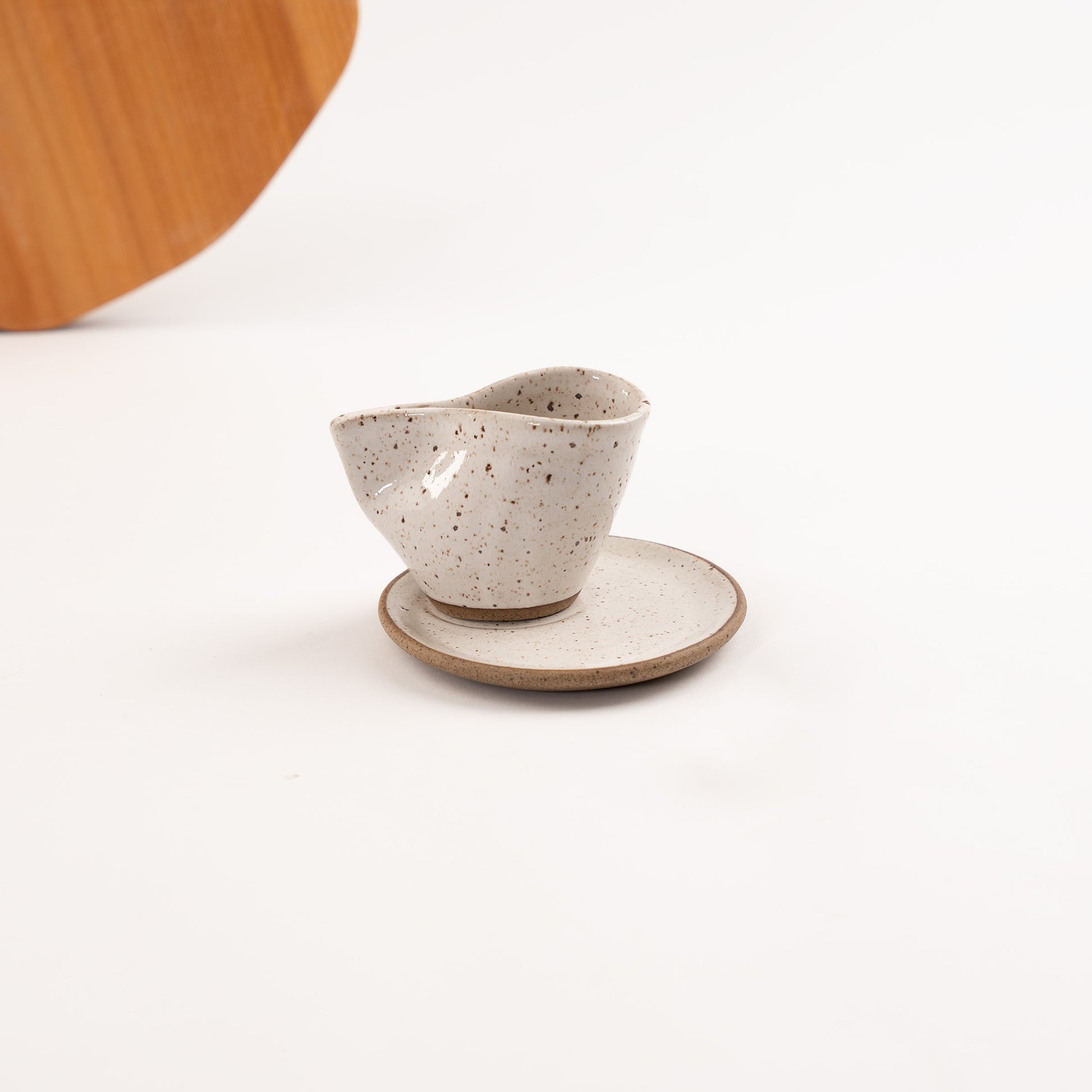 Xícara Andorinha em cerâmica artesanal, com forma delicada e desenho funcional que valoriza o gesto do uso cotidiano. O nome remete à leveza e ao movimento dos pássaros, refletido nas linhas suaves da peça.