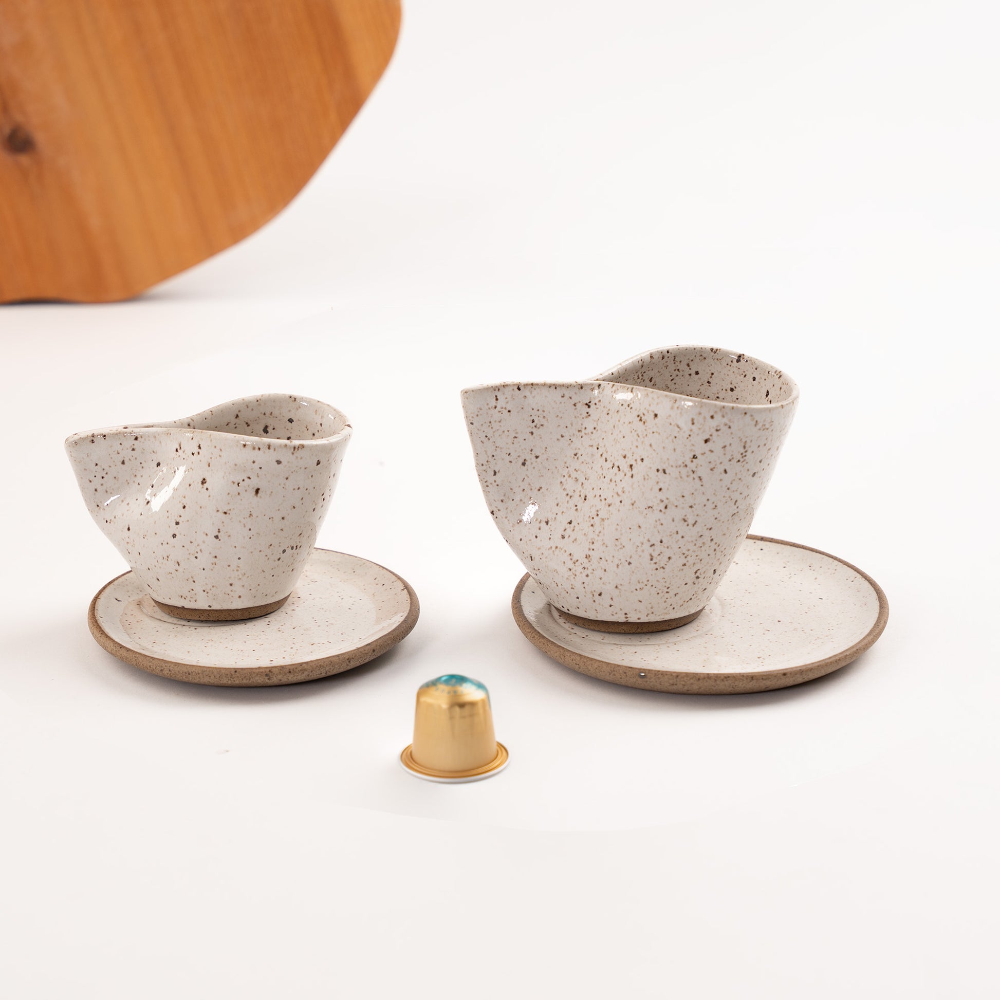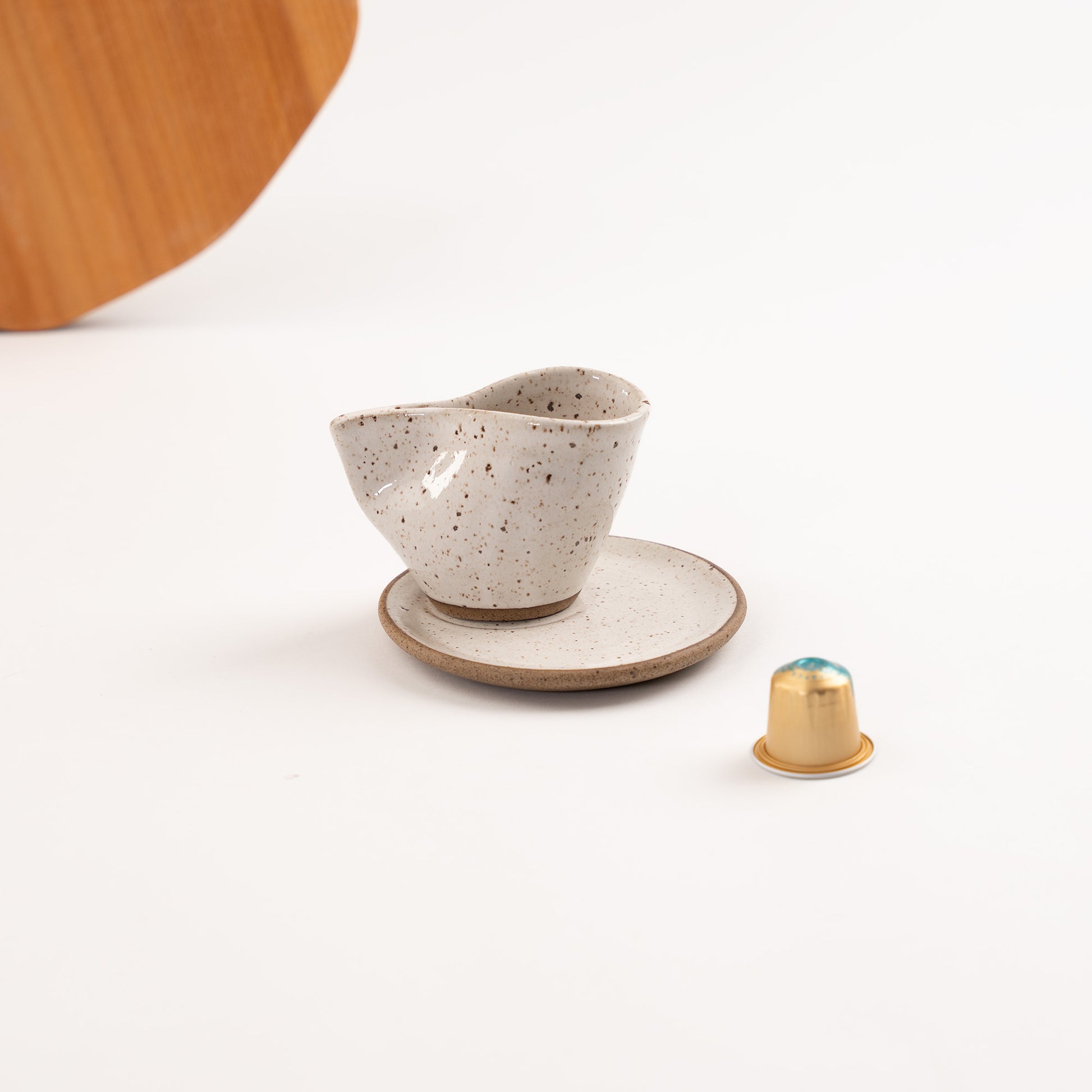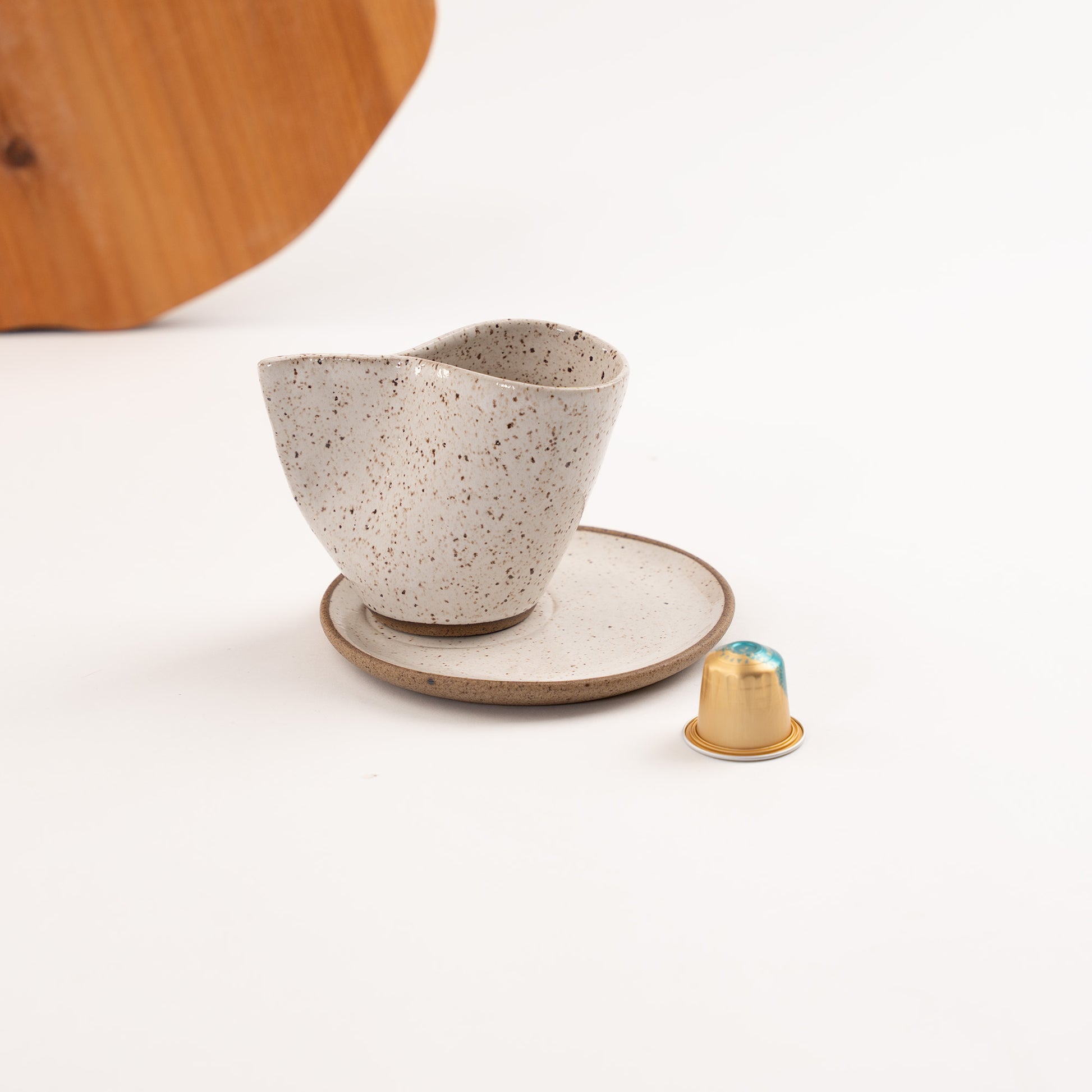 Feita à mão com argilas selecionadas e queima em alta temperatura, cada xícara possui variações únicas de cor e textura. É ideal para cafés, chás ou momentos de pausa com mais intenção e beleza.