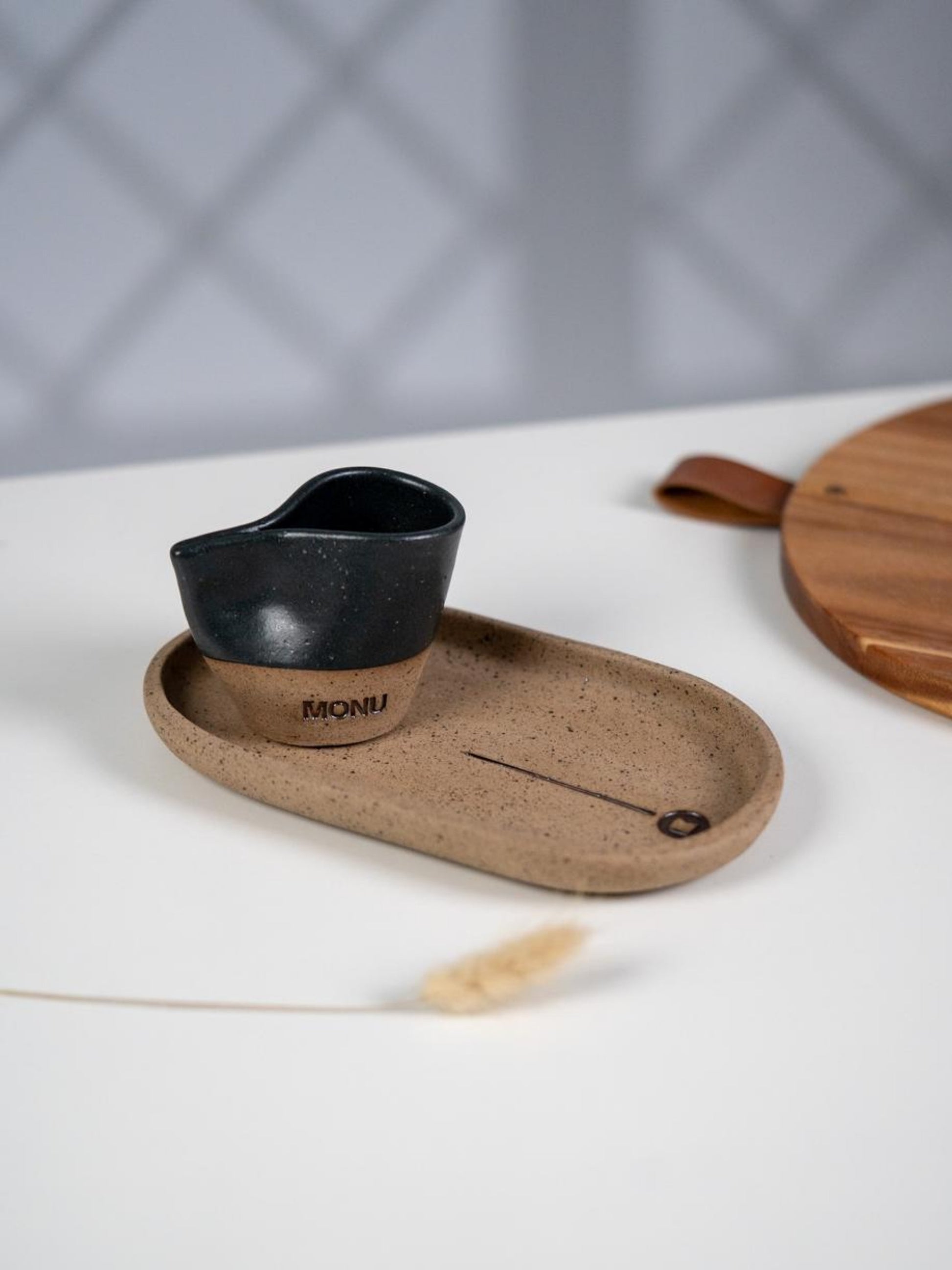 Xícara Andorinha com pires alongado personalizada em cerâmica artesanal, feita à mão com atenção aos detalhes e acabamento único. O pires alongado traz leveza e sofisticação ao conjunto, enquanto a personalização adiciona um toque afetivo à peça — ideal para presentes, cafés especiais ou composições únicas na mesa posta.