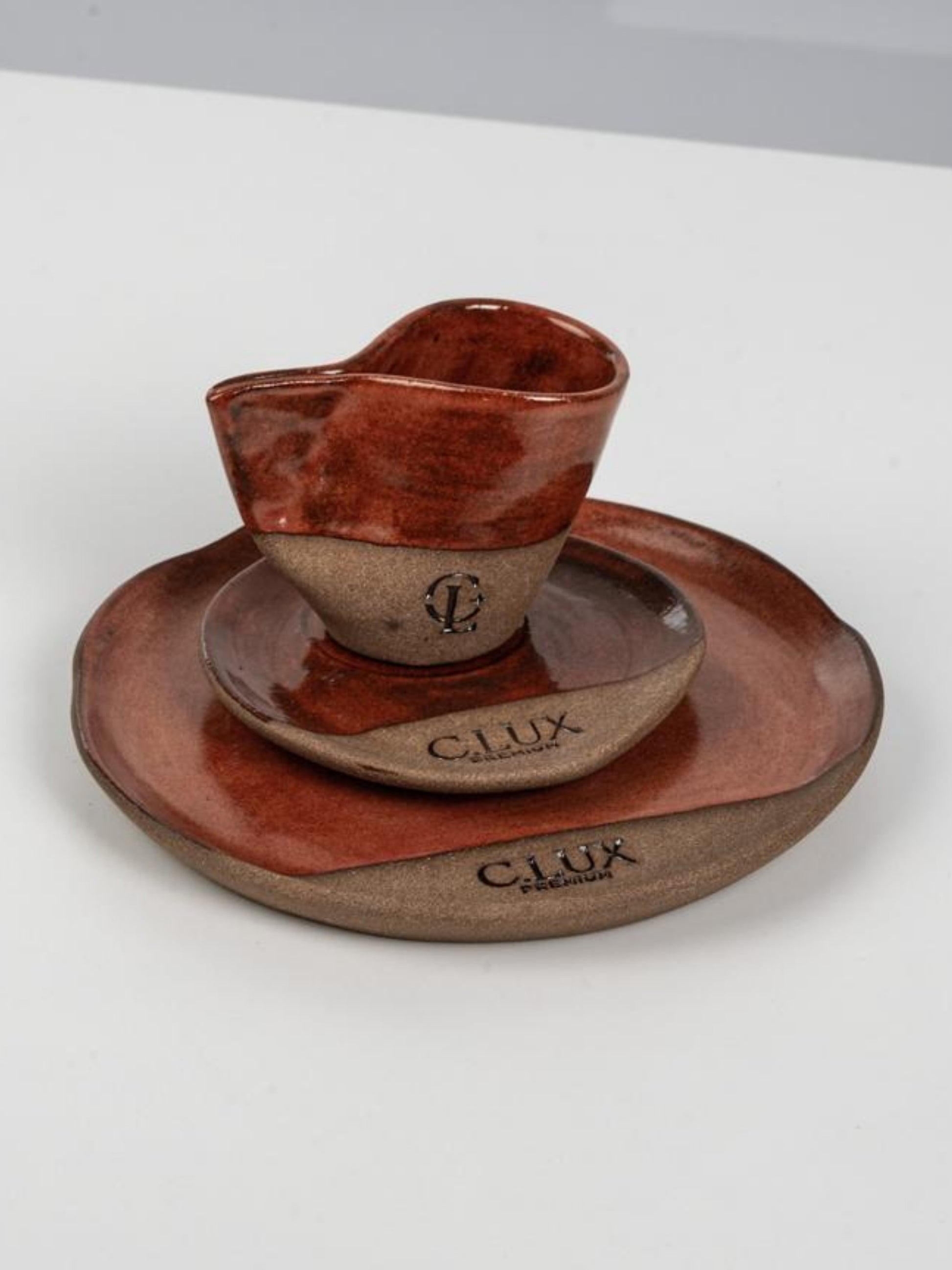 Feito a mão: A matéria-prima ganha forma e identidade através do toque das mãos. Pequenas variações de tamanho, textura e tonalidade fazem parte dessa jornada, tornando cada criação exclusiva. A argila responde ao fogo de maneira singular, criando nuances e efeitos impossíveis de replicar em série.