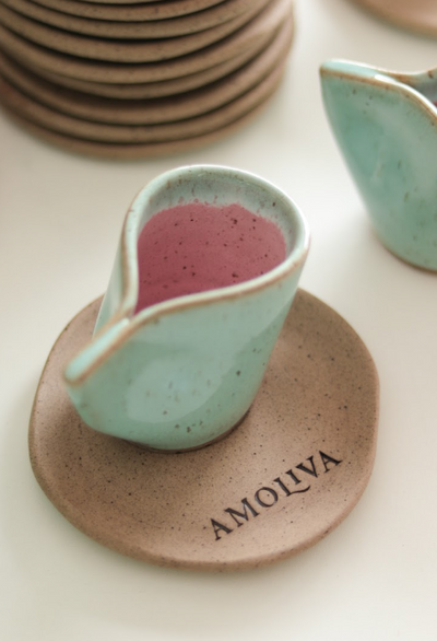 Feita à mão com argilas selecionadas e queima em alta temperatura, cada xícara possui variações únicas de cor e textura. É ideal para cafés, chás ou momentos de pausa com mais intenção e beleza. Pode ser usada sozinha ou combinada com pires da mesma linha.