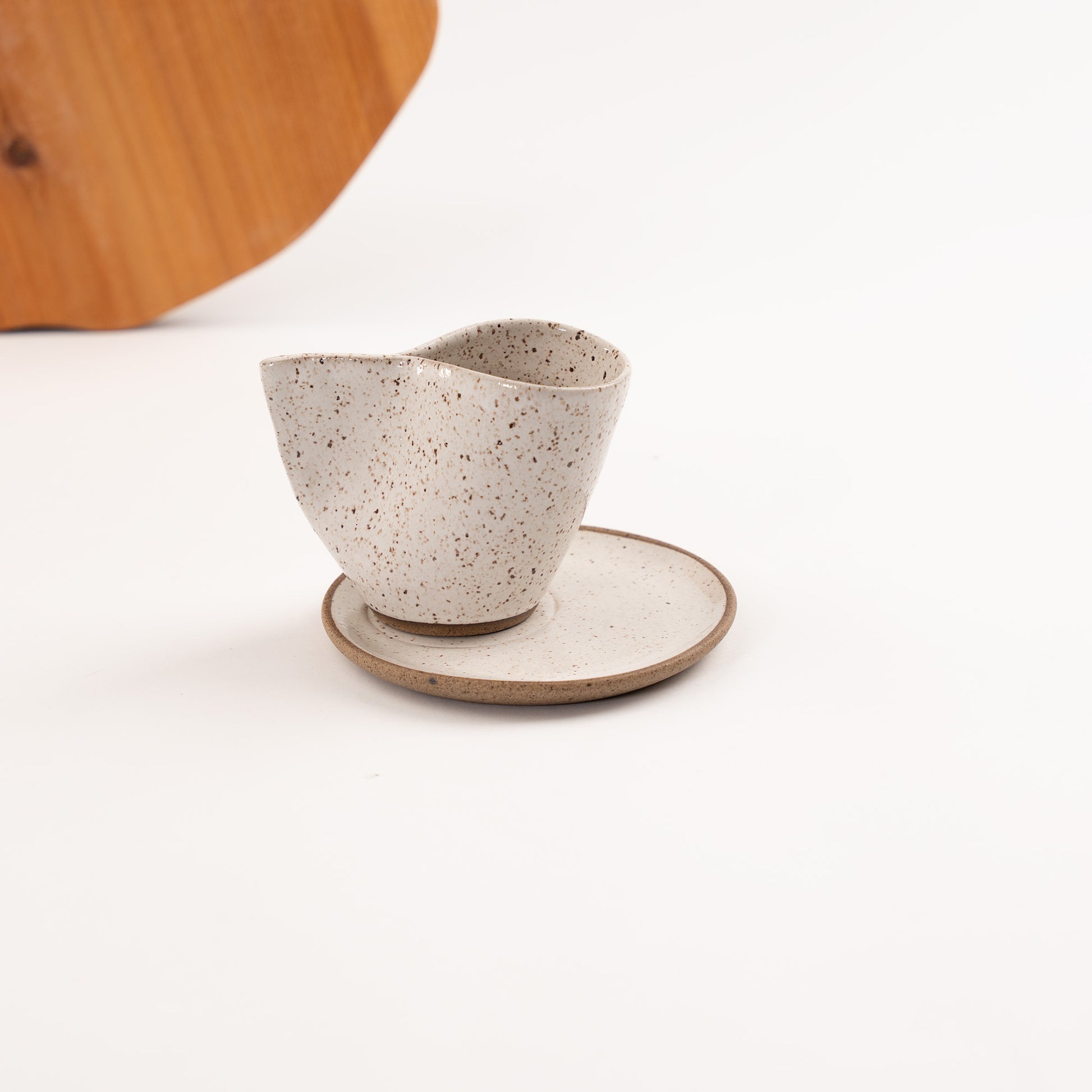 Xícara Andorinha em cerâmica artesanal, com forma delicada e desenho funcional que valoriza o gesto do uso cotidiano. O nome remete à leveza e ao movimento dos pássaros, refletido nas linhas suaves da peça.