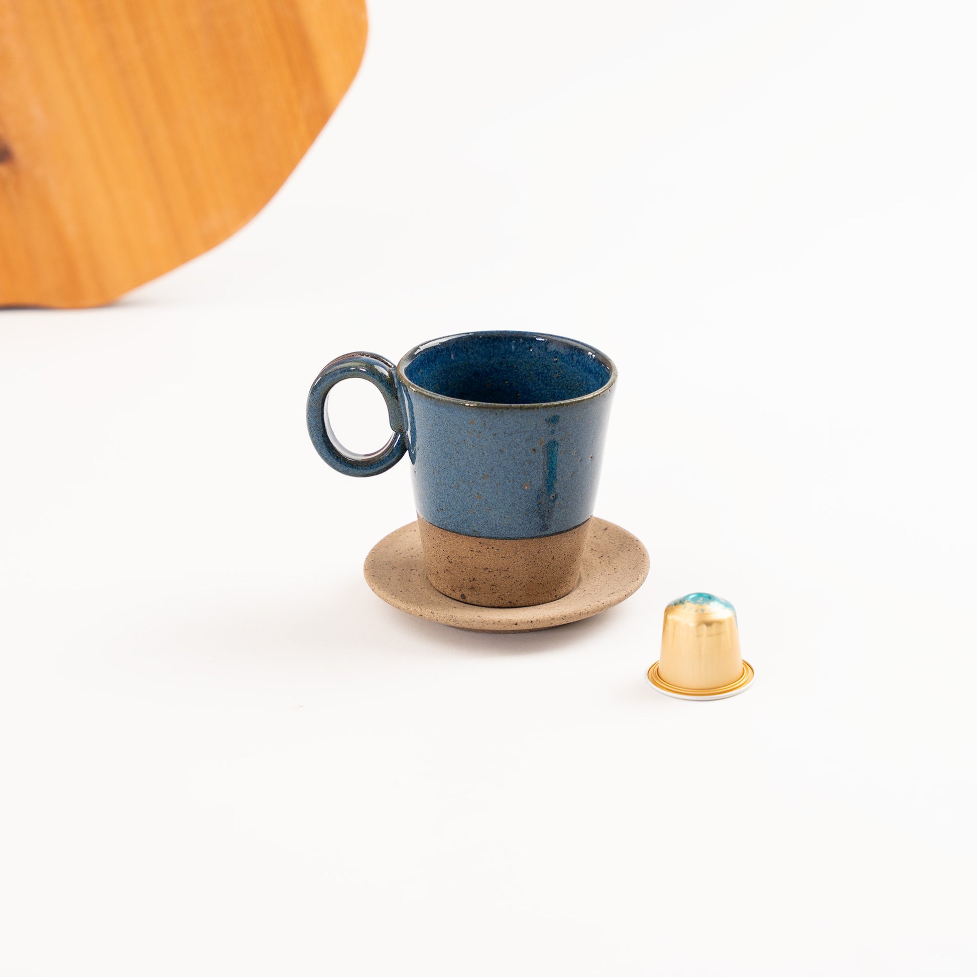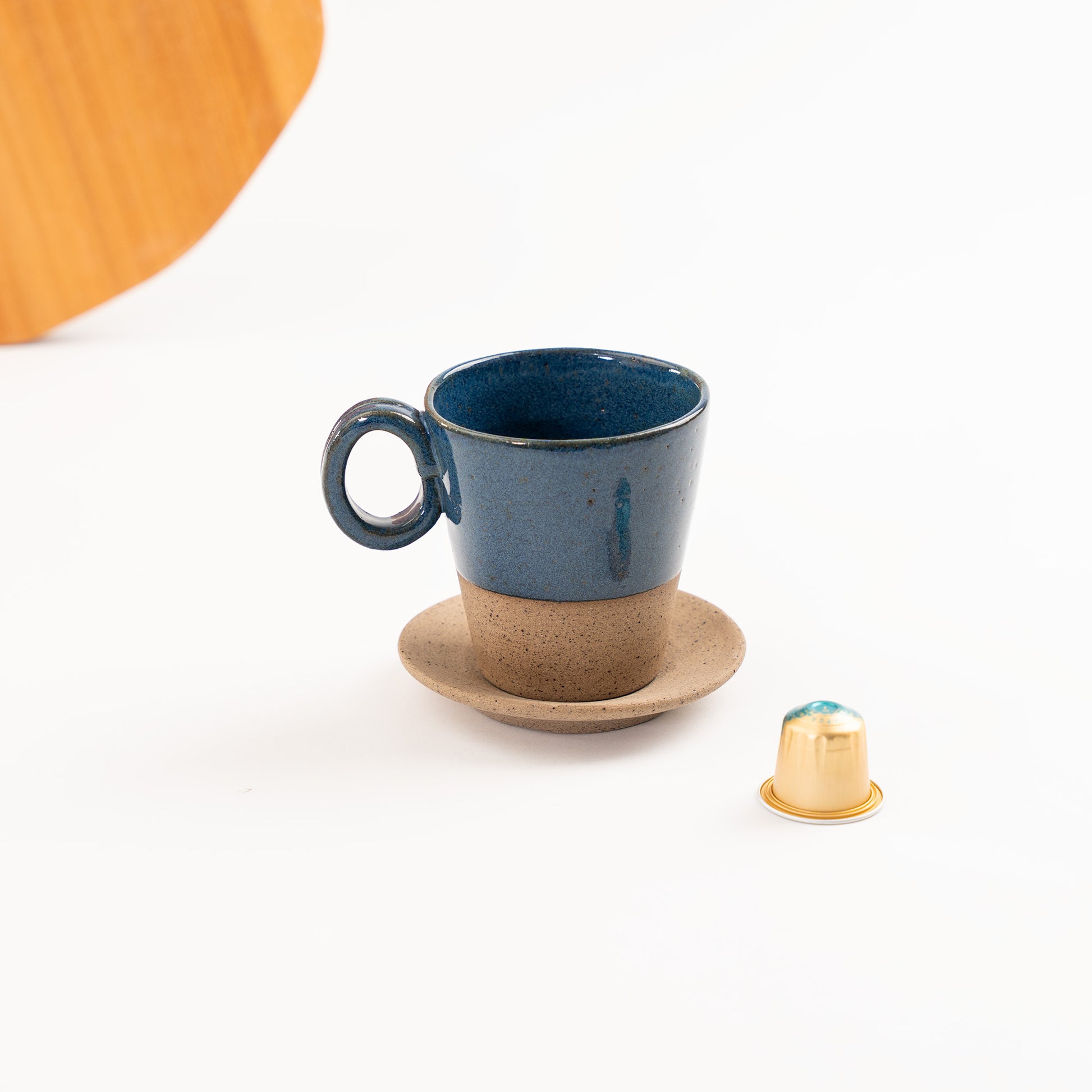 Produzida manualmente com argilas selecionadas e queima de alta temperatura, apresenta variações naturais que tornam cada peça única. A espessura das paredes e o encaixe confortável na mão tornam o uso prazeroso e preciso.
