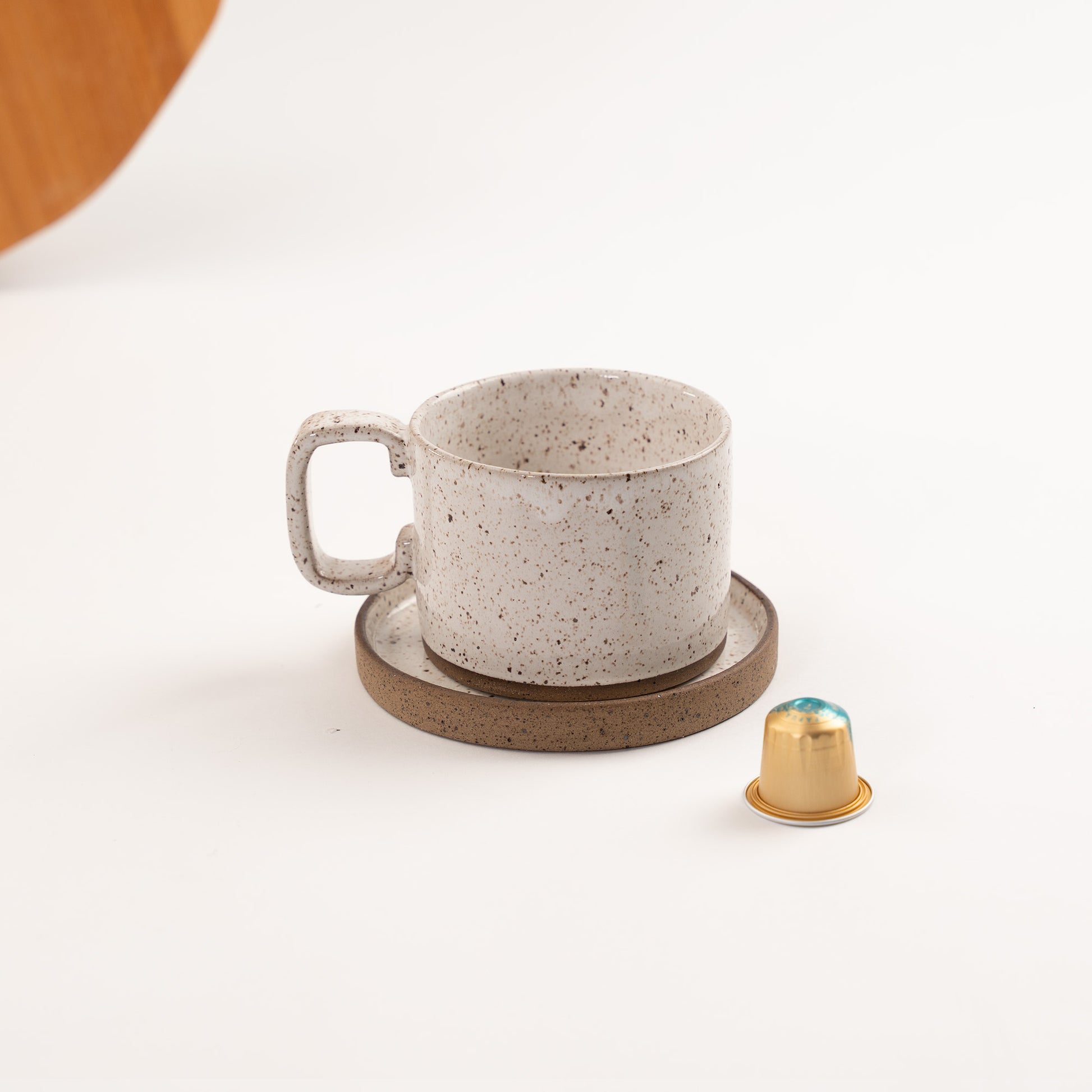 Xícara reta em cerâmica artesanal, com formato cilíndrico e acabamento feito à mão que valoriza a simplicidade e a funcionalidade da peça. Seu design limpo e vertical oferece elegância discreta, ideal para o dia a dia ou composições mais refinadas.